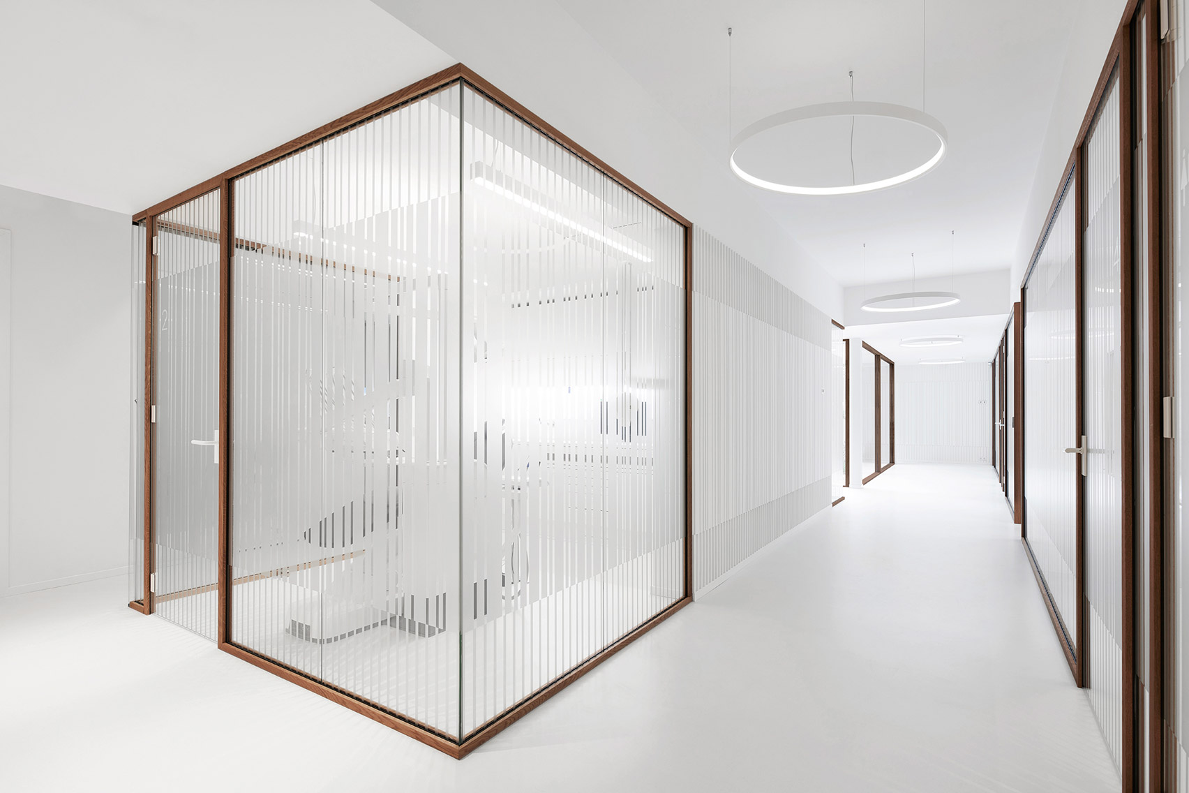날카로운 선과 깨끗한 흰색은 의료 전문성을 실용적이고 직관적으로 나타내며, 중앙 정원과 지붕 조명은 전체 진료를 통해 자연 채광을 발산하여 식물과 사람 모두에게 영양을 제공한다.