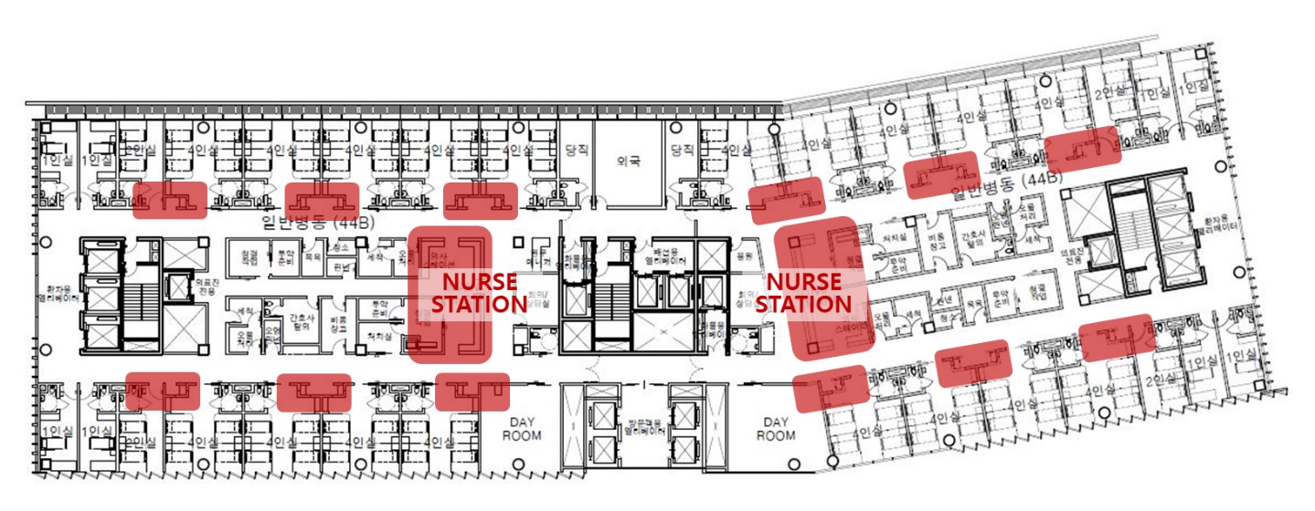 그런데 다음으로 필요한 단계는 물류의 분산화입니다. 간호사의 업무는 환자들을 직접 보는 시간보다 약제 및 물류 관련 업무로 소비되는 시간이 훨씬 더 많습니다. 따라서 물류 관련 실들도 분산 배치하여 간호사들의 동선량을 실질적으로 줄여야 합니다. 해외병원들처럼 한 병동 내에서도 청결작업실, 오물처리실, 창고류를 몇 개의 세트로 분산 배치하는 것을 고려해봐야 할 시점입니다.
