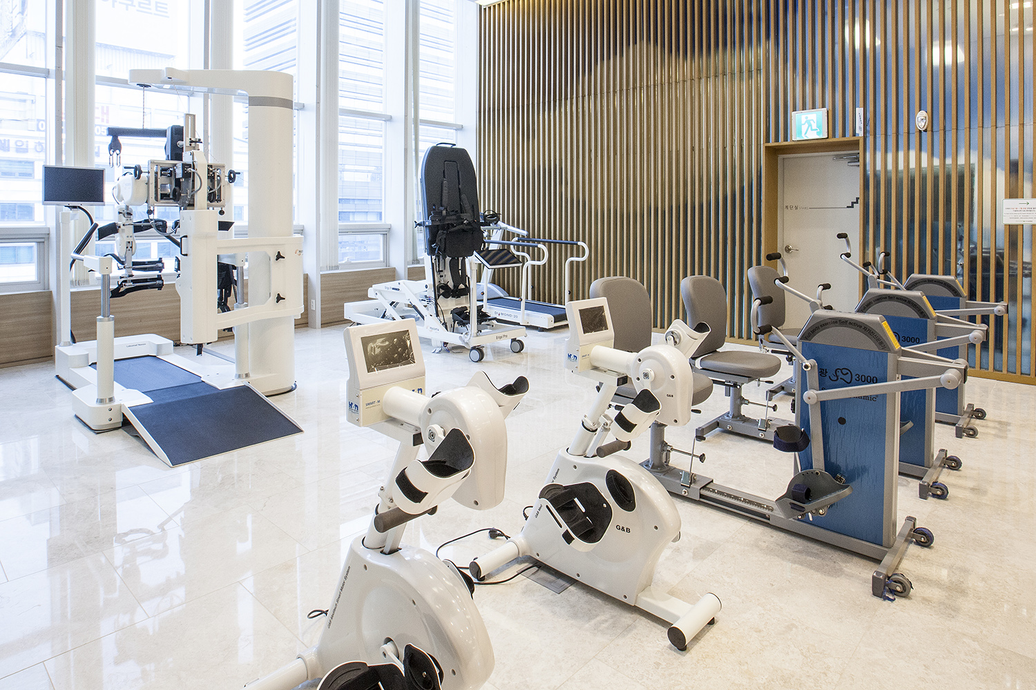 하나를 쭉 일렬로 연계성 있게 치료한다고 봐도 될 것 같습니다. 예를 들어서 다른 병원은 수술하면 다 수술 쪽으로만 가는데, 우리 병원은 수술도 하고, 비수술도 하는 것이죠. 수술하는 병원은 똑같은 환자를 봤을 때 수술을 할 수도 안 할 수도 있지만, 결국은 수술하는 방향으로 나갑니다. 하지만 우리는 수술이 꼭 필요한 경우가 아니라면 수술하지 않습니다. 특히 우리 병원은 비수술 치료법이 발전되어서 비수술 환자들이 많으니 이쪽에 신경을 더 많이 쓰는 편입니다. 그리고 예를 들어, 재활치료를 하더라도 재활환자는 대부분 중풍 환자들입니다. 뇌졸중이나 마비 환자들이죠. 이분들에게는 통증이 있으면 바로 통증 치료까지 할 수 있습니다. 보통은 재활에서 통증까지 연결해서 치료하는 병원은 드물다고 볼 수 있습니다. 몸이 기울어지면 바로 통증으로 이어집니다. 퇴행도 빨리 오는데, 우리 병원이 그런 것을 다 치료할 수 있는 것이죠.