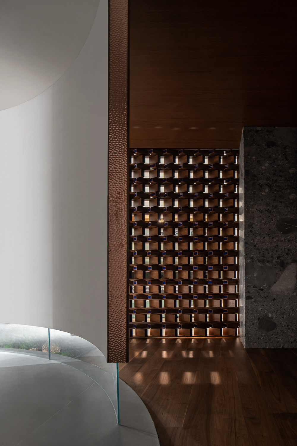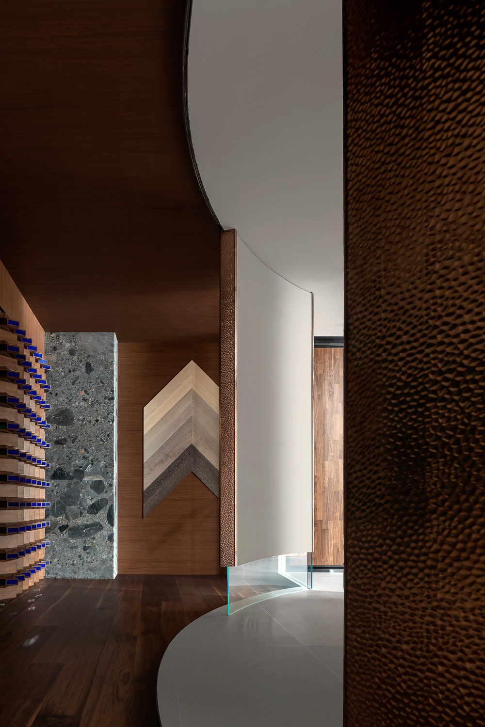 건축가는 공간구성 측면에서 두 브랜드에 서로 다른 형태를 부여하고, 차이점을 제시하되 통일성을 갖기 위해 사각형과 원형을 두고 이들 사이의 관계를 탐구했다. 사각형은 직선 형태와 표준, 무결성을 의미하고, 원형은 따뜻하고 부드러운 형태로 조화를 의미한다. 고대 예술가들이 원형을 높이 사기는 했지만, 그것만을 독자적으로 옹호하지는 않았으며, 사각형 또한 원형에 포함된다고 믿었다. 예술적 기술로 위대한 아름다움을 갖춘 원형을 통해 사각형의 진가를 알아볼 수 있기 때문이다. 또한 사각형은 사실적이고, 느끼거나 만질 수 있는 반면, 원형은 그 너머에 있는 존재로 보아 사각과 원의 변증법적 관계는 명확함에서 관념으로 이동하는 과정이라 보았다. 결론적으로 건축가는 이 프로젝트를 통해 다른 관점을 만들고, 친숙하지 않은 것들을 한 공간 안에 제시했다. 특히 ‘나무’를 기반으로 다른 자재들이 추가되며 공간 안에 자연을 상세하게 투영하고 있다.