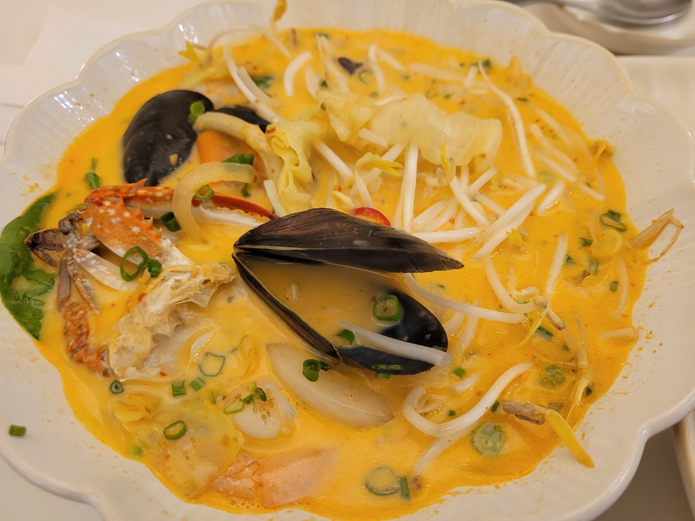 ‘로제 해산물 쌀국수’ 는 토마토소스에 하얀 생크림을 섞어 만든 ‘로제 (rose) 소스를 기본으로 홍합, 새우, 게 등 각종 해산물과 야채를 우려내어 국물이 크리미하고, 맵고 얼큰하여서 해장용으로도 좋을 듯하더군요. 고급스럽고 신선한 맛의 조합으로 자주 먹어도 질리지 않을 것 같았습니다.