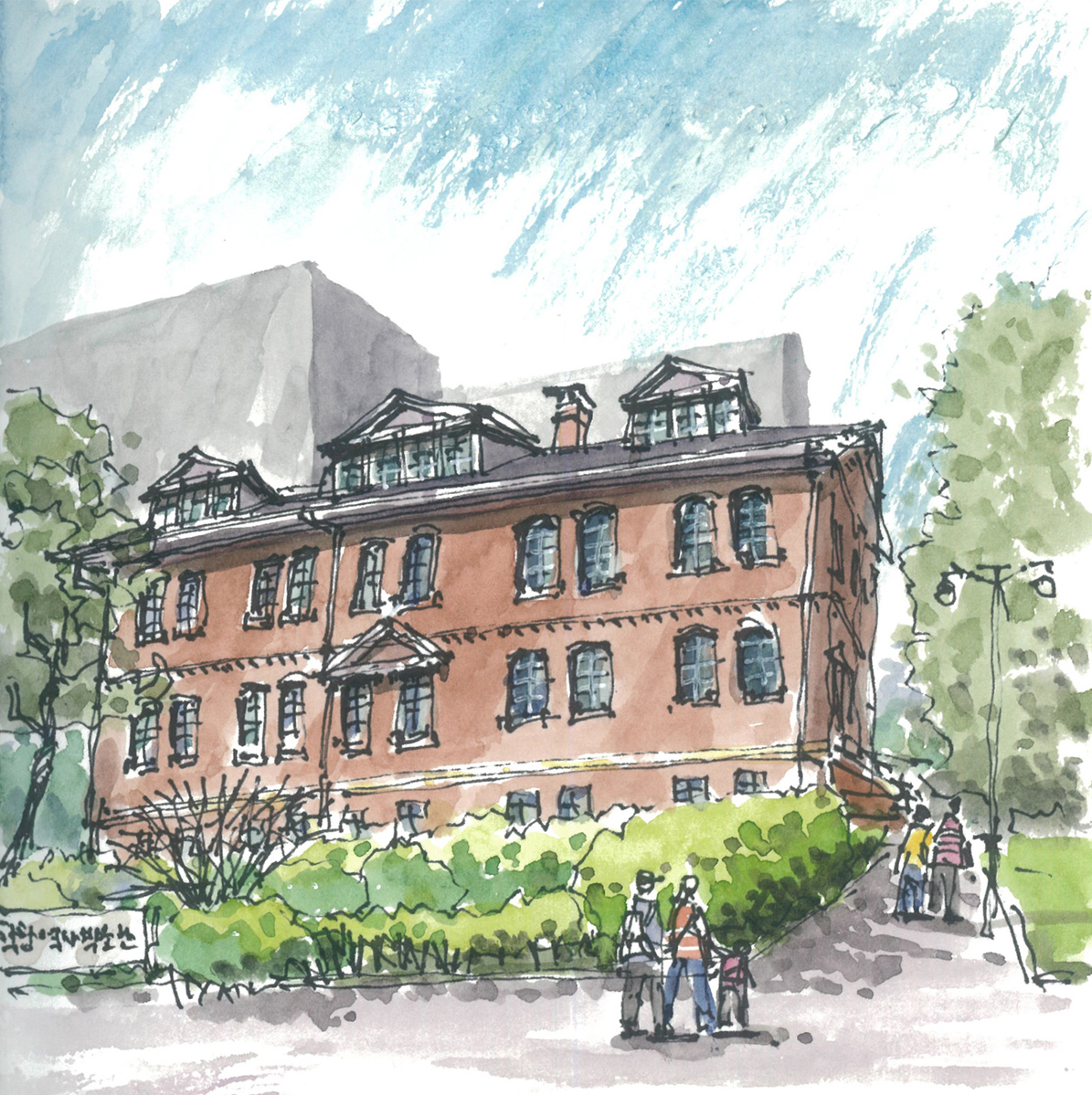 박공지붕과 붉은 벽돌로 이루어진 전형적인 근대건축물로 이웃한 정동제일교회와 함께 정동길의 풍경을 한층 더 멋스럽게 하고 있다. 창문에 화강석 키 스톤(key stone)들이 전체 벽돌건축의 지루함을 살짝 벗어나도록 디자인되어 있다. 보행로에는 한식기와를 얹은 담장이 영역을 구분하고 있는데 담장에 겨울햇살이 드리우면 따뜻한 감성을 느낄 수 있을 것 같다. “여성도 배워야 하고 이름을 가져야 하고 그래야 조선에 힘이 생긴다.”는 130여 년 전 초창기 이화학당의 교육이념 등 이화의 설립배경과 역사를 담고 있다. 1915년 미국인 사라 J. 심슨이 위탁한 기금으로 건립되었다.