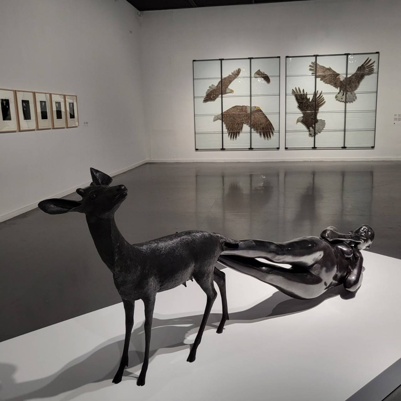 <황홀>은 또 어떠한가. ‘빨간 망토’에서 할머니와 소녀를 잡아먹는 늑대이야기가 모티브가 된 늑대 배를 찢고 나오는 여자를 표현한 <황홀>에서 여자는 소녀가 아닌 성인이다. 싸움에서 이긴듯한 전사의 모습을 한 강인한 한 여성을 보면서 누구의 힘에도 의지하지 않고 우뚝 선 한 사람이 보였다.