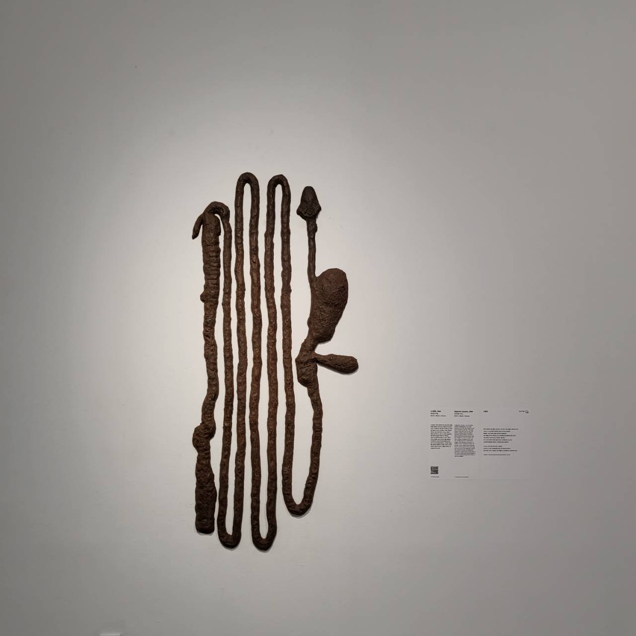 혀부터 항문까지 내장을 표현한 라디에이터를 연상시키는 <소화계>라는 작품은 내 몸의 일부가 저렇게 묘사될 수도 있구나라는 것을 잊을 만큼 다른 관점의 새로운 피사체로 보였다. 주철로 제작되어 연약한 내장기관과 상대적으로 더욱 대비되기도 했고. 그녀에게 이러한 작품적 표현은 억압된 사고를 전복시키고 본질에 집중하도록 하고픈 그녀의 바람이었고 그 당시 여성작가들이 표현한 전략 중 하나였다.