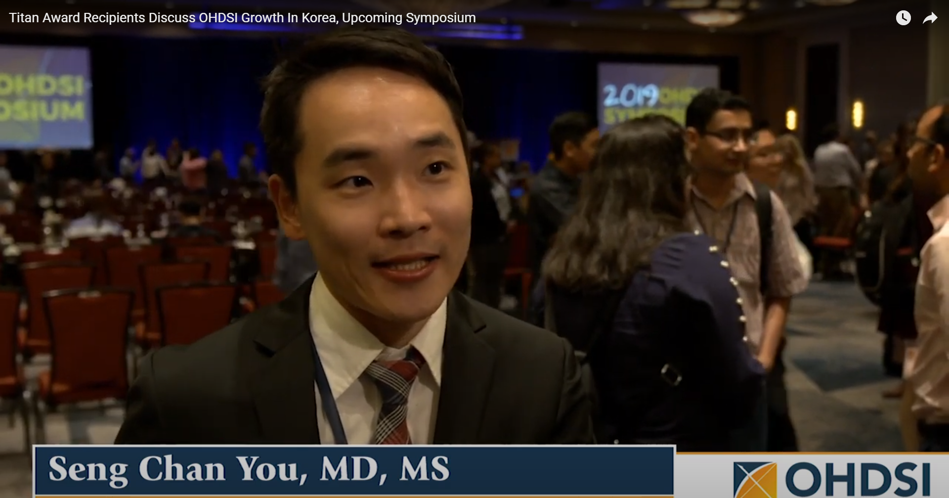 2019년 Besthesda에서 열린 국제 OHDSI 심포지엄에서 ‘Titan award’ 수상 후 수상소감 발표 인터뷰 모습 *오딧세이(OHDSI)?