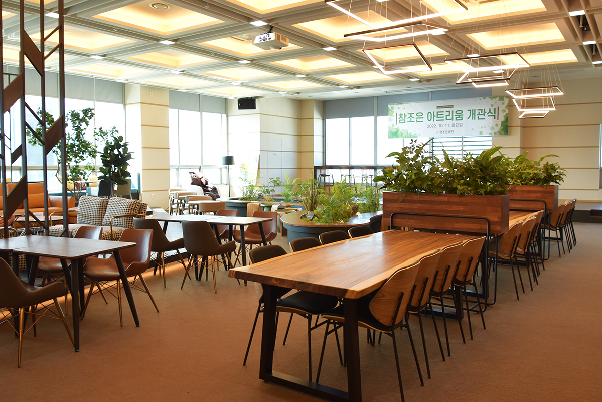 (10층) 참조은 아트리움 ⓒ참조은병원 참조은병원이 종합병원을 만들면서 가장 크게 공을 들인 공간은 10층 아트리움이다. 이는 지역민들의 휴식처와 모임 장소로서 자유롭게 활용하도록 하기 위한 참 좋은 선택이었다.