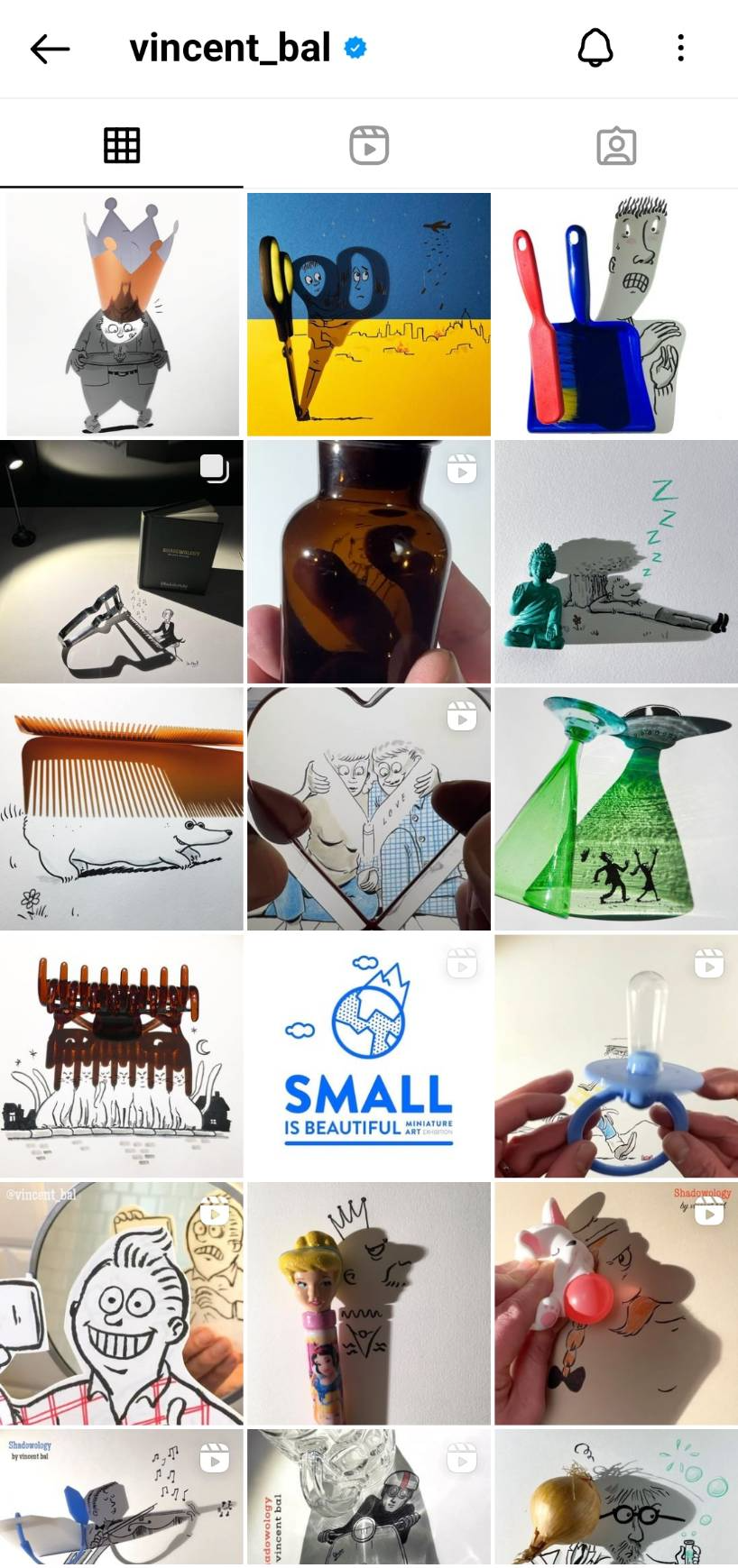바로 영화감독이자 쉐도우아티스트, 일러스트레이터인 '빈센트 발'이다. 그의 전시가 국내에서 열려 전시회를 찾았다. 사실 이미 인스타그램에서 팔로우를 맺고 그의 작품을 보고 있었기에 그의 기발함은 익히 알고 있었다. (그는 현재 91만 명의 팔로워가 있고, 하루하루 더 늘어나고 있는 중이다)