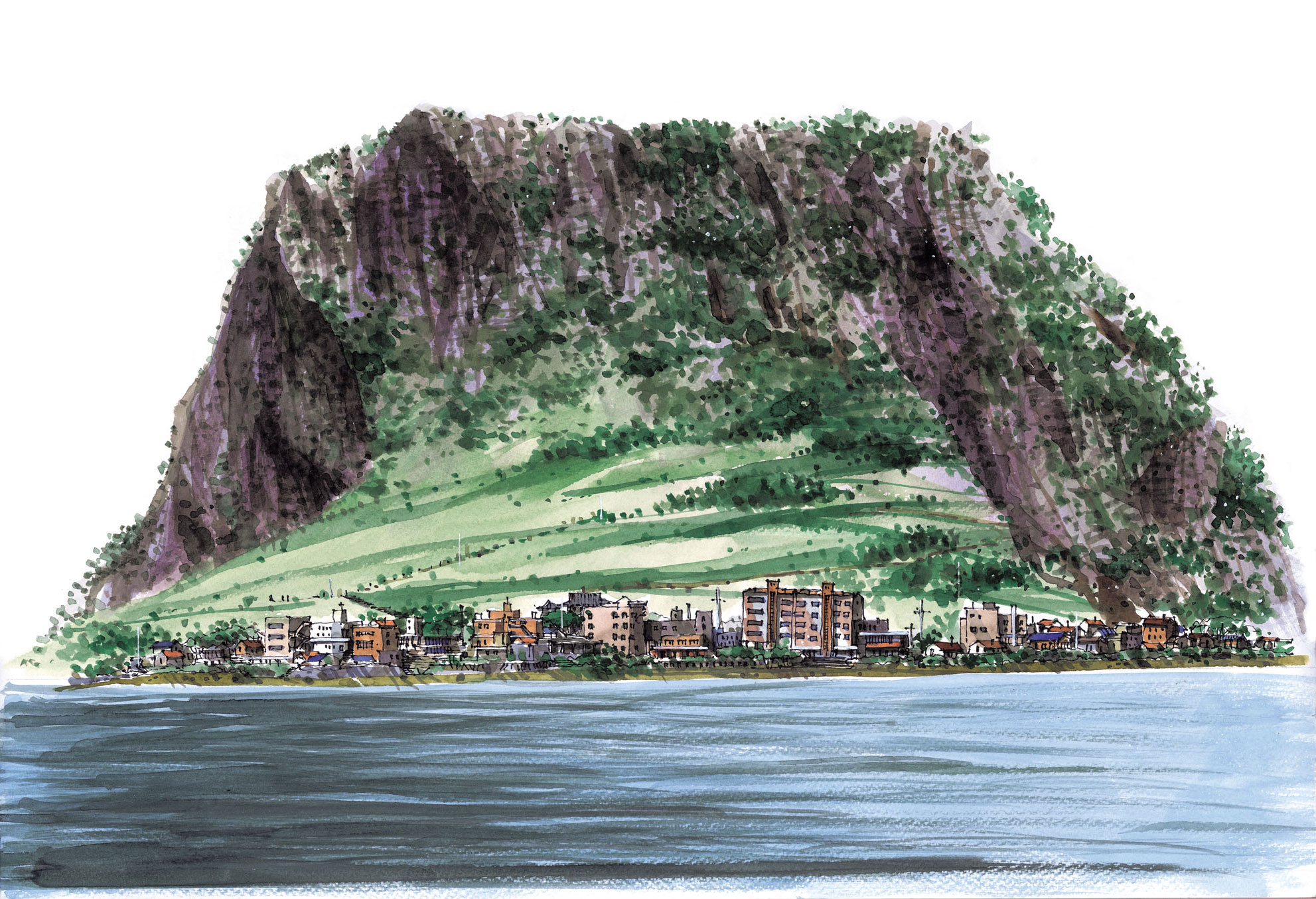 바라에서 바라본 성산일출봉 성산일출봉 풍경 제주 용머리해변 주상절리 서귀포로 이동하면 산방산과 용머리 해안도 특이한 형상을 가지고 있다. 한라산 정상을 설문대 할망이 한 움큼 떼어 집어던져서 만들어졌다는 전설이 깃든 산방산은 우람한 자태를 자랑한다. 우선 산방산은 주변 평지의 스케일을 무시한 채 독불장군처럼 우뚝 선 모습이라 마치 초 현실 속 컴퓨터 그래픽의 장면과 흡사하다. 불쑥 솟은 형상은 신비롭고 이색적이다. 주변 어느 장소에서도 보더라도 자신의 존재감을 강하게 나타내고 있다. 차로에 내려 올려다 본 보문사. 산방사, 광명사같은 사찰들이 산방산을 배경으로 자리를 잡고 있다. 장엄한 자연의 산세에 비해 인간의 건축은 멋을 부려도 조악할 뿐이다.