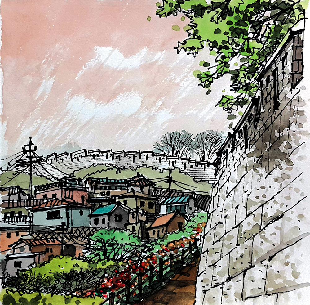 혜화문에서 시작해서 성곽을 따라 계단을 올라 걷는 한양도성은 낙산방향으로 이어진다. 한양도성 낙산구간의 산책로인데 성벽 옆 보행로가 잘 조성되어있다. 성곽을 이루고 있는 묵직한 돌들마다 조선시대부터 축적된 세월과 사연이 촘촘하게 박혀있다. 사계절을 따라 변화하는 나무들과 한자리에 우뚝 서서 좀처럼 변하지 않는 성벽이 묘한 대조를 이룬다. 이 성곽 옆길을 따라 걷다보면 이화마을을 오르기 전 쯤, 도성 밖의 경사지에 위치한 아담하고 검박한 동네가 눈에 띈다. 성곽과 삼선공원 사이에 위치한 ‘장수마을’이다. 통계자료를 확인해보니 동네 이름에 걸맞게 나이 드신 분들이 실제로 많이 살고 계시다.
