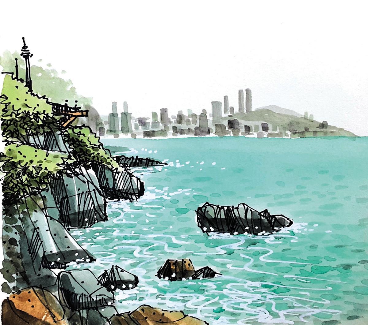 부산 오륙도 부산 이기대 해변 여기저기 계절을 알리는 봄꽃들과 연초록의 숲이 어우러진 해안풍경은 바쁘게 돌아가는 세상의 시간과는 전혀 다른 주파수의 영역으로, 이곳은 말 그대로 ‘슬로우 라이프’다. 거기에 진회색 바위와 파도가 만나는 곳에서 일어나는 허망한 포말과 철썩이는 파도소리, 소금기 머금은 바다 내음까지 합쳐져 느낌은 오감으로 전해진다. 갯바위에 서서 바다낚시에 시간을 보내는 한가로운 태공들도 눈에 띈다. 해운대 방향으로 이동하면서 멀리 보이는 달맞이 고개를 배경으로 보이는 도시풍경은 빼곡하게 세워진 호텔과 초고층 주상복합 아파트 건물들은 우후죽순으로 생겨나있는 형국이지만 도시경관은 바다를 면하고 있어 마치 SF영화의 한 장면처럼 미래도시의 분위기를 조성한다.