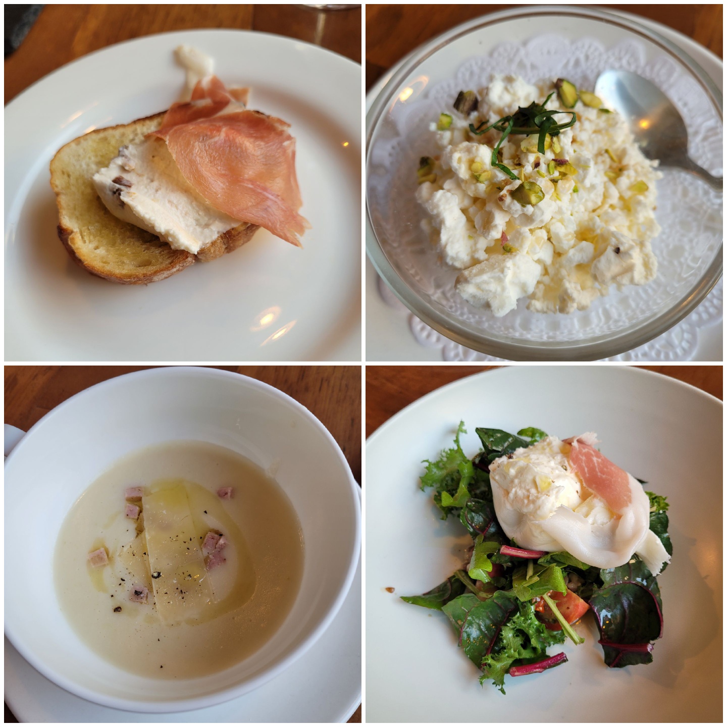 프로슈토(Prosciutto)와 함께 치즈 스프레드를 바른 식전 빵을 시작으로, 이어서 나오는 독특한 치즈 요리의 향연에 점점 빠져들었습니다.