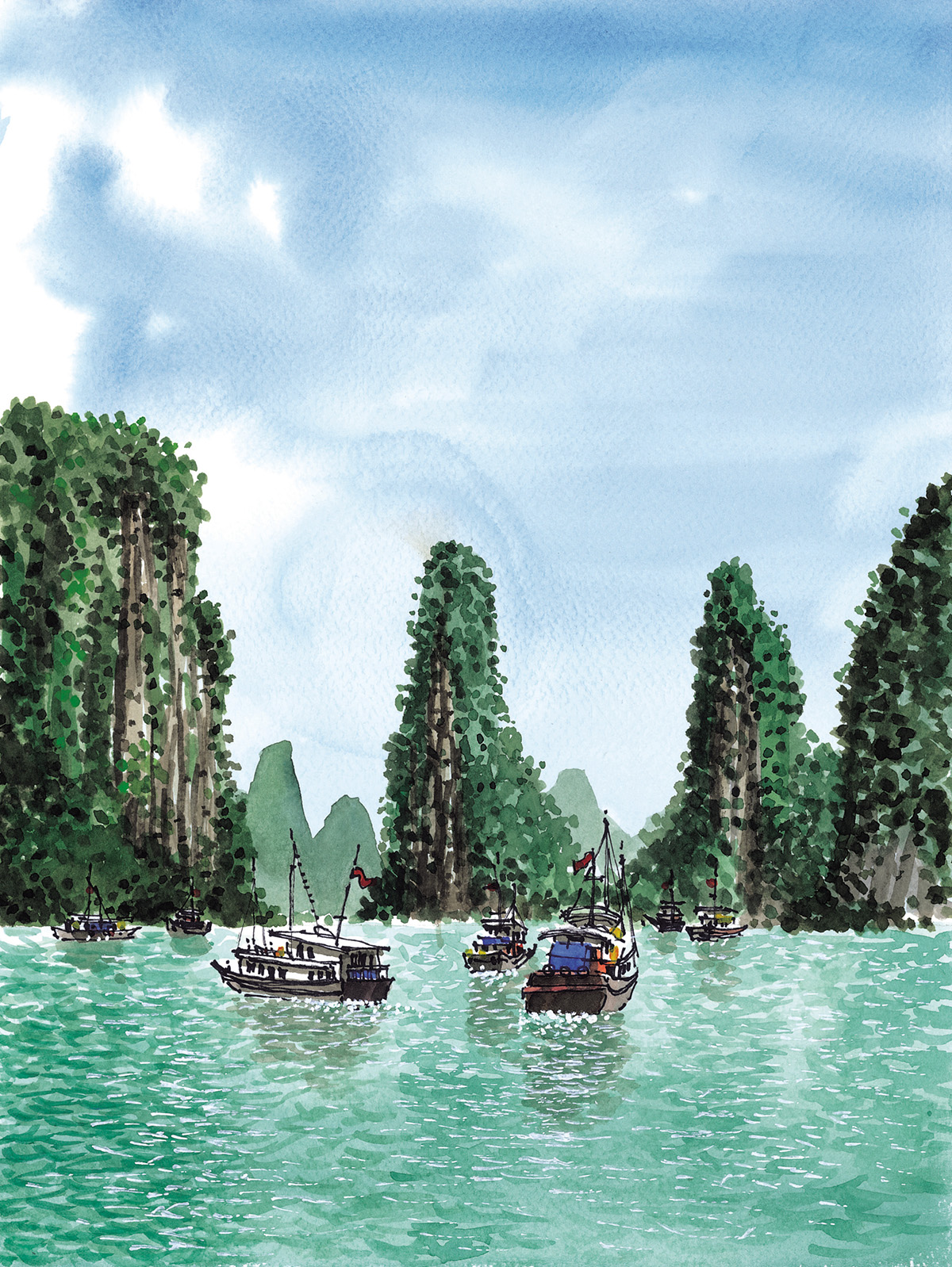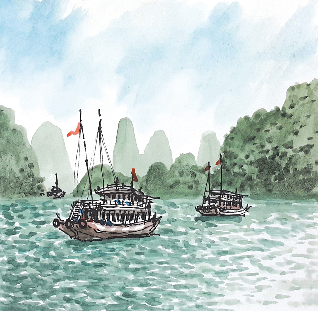 섬들을 향해 천천히 다가가는 보트의 갑판 위에서 호기심을 가지고 바라본 풍경은 점점 더 흥분의 도가니로 빠져들게 한다. 이 매력적인 장소는 우리로 하여금 베트남의 추억을 감동의 서사시로 남기게 한다. 이 바다위에는 작은 배에 과일들을 싣고 손수 장사를 하거나 혹은 바지선위에서 방문자들에게 기념품을 파는 보트피플의 애환도 공존한다. 또 이런 무더위에 낯선 이방인들을 뱀부보트에 옮겨 태우고 비경 속으로 안내하는 일을 반복하며 뙤약볕에 노를 저어야 하는 현지인의 어깨에서 고단한 삶의 무게가 느껴진다.