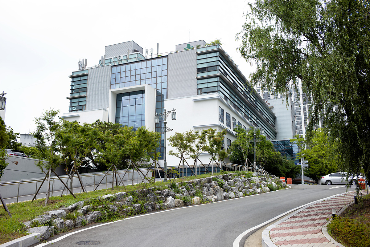 시지노인전문병원 시지노인전문병원은 도로를 내려다보며 주변이 산으로 둘러싸인 전망 좋은 곳에 위치해 있다. 특히 병원으로 들어가는 진입로 역시 도로에서 바로 곡선의 라인을 따라 마치 호텔로 들어서는 듯한 느낌이 무척 인상적이다. 앞에는 지난해 새로 지어진 유하우스 주간보호센터가 멋스럽게 설계되어 있고, 뒤에는 아파트, 옆으로는 초록의 식물들이 가득한 수경공원이 넓게 조성되어 있다.