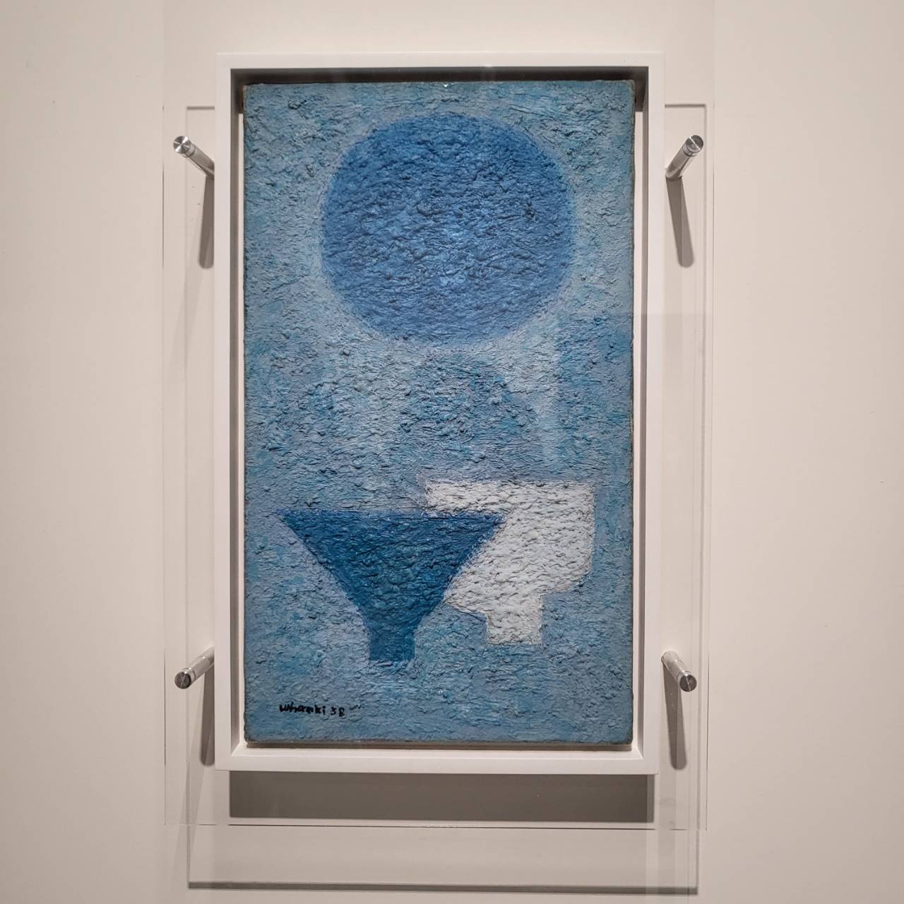 제1전시관 1부 전시장에서는 달과 달항아리, 산, 구름으로 표현되는 1930년대-50년대 명작들이 보여지고, 1951년 한국 전쟁기에 그린 작품인 <뱃놀이>, <푸른 공간>도 만날 수 있는데 설명을 보지 않는다면 이때가 전쟁터일까 싶을 정도로 아름답다. 부산 피난시절 다락방에서 190cm 장신으로 쪼그리고 앉아 작품을 그리며 그는 이렇게 적었다.