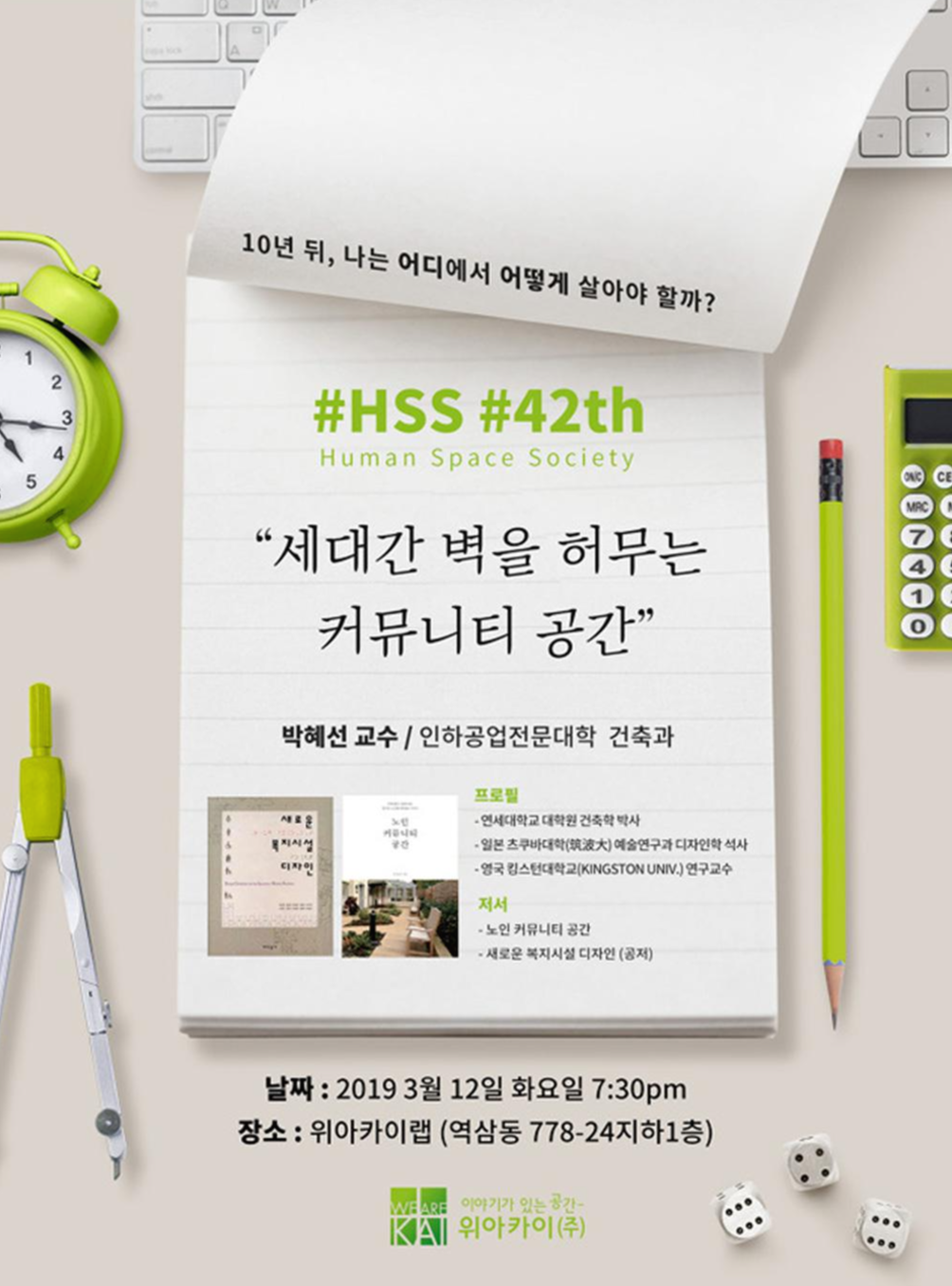 위아카이 랩의 <Human Space Society> 42번째 세미나 인하공전 건축과 박혜선 교수님의 <세대 간 벽을 허무는 커뮤니티 공간> 편이었습니다.[글 : 노태린 대표]
