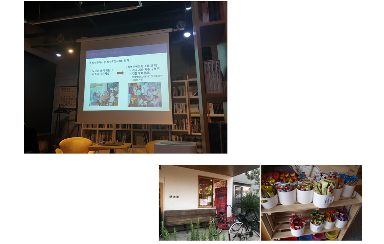 HSS 강의 모습 (위) / 킨모크세이 모습 (아래) 일본의 <킨모크세이> 사탕가게, 노인과 아이를 연결하다
