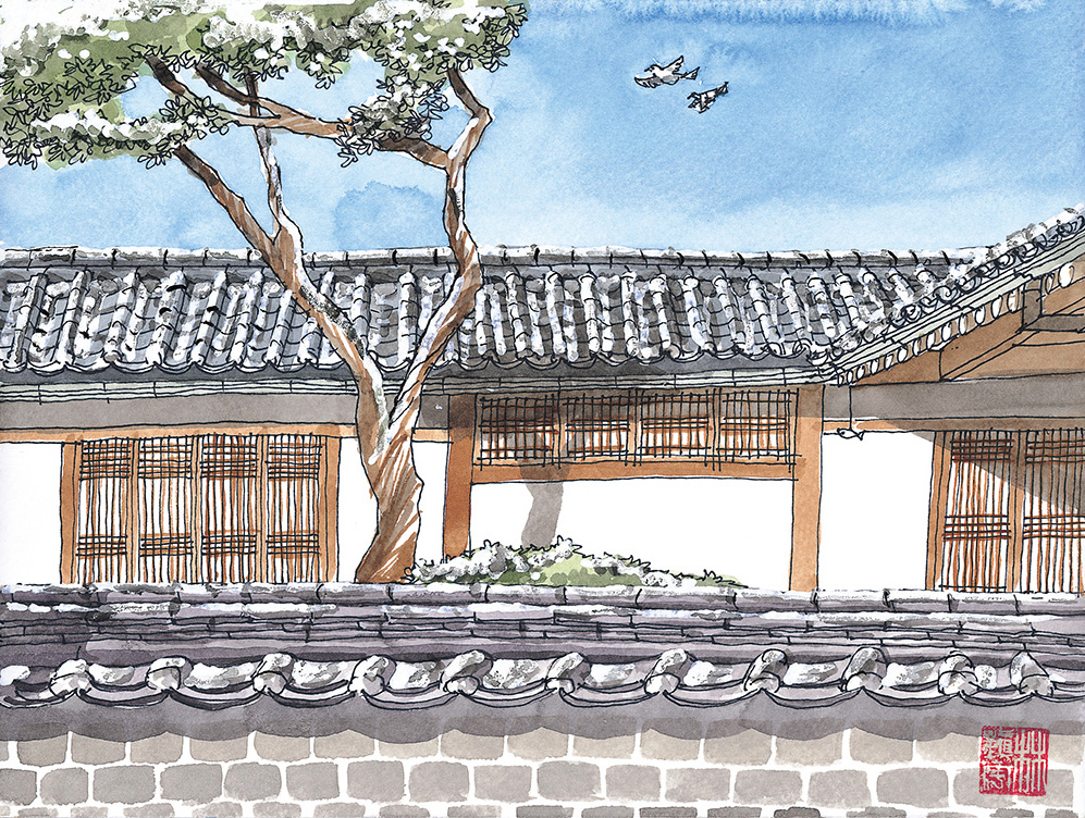 북촌문화센터 나는 오늘도 나의 방식으로 전통한옥에 대한 재창조의 길을 찾아 걷고 있다. 서울의 전통건축들을 찾아 꾸준히 걷고 느끼고 그린다. 즉, 그림으로 기록하고 역사를 찾아보고 느낀 점을 소감을 적는 일이지만 나의 작은 재능으로 한옥의 우수성과 아름다움을 알리는 일에 기여를 할 수 있다면 감사한 일이다. 이제 시나브로 가로수는 옷을 벗고 다음 계절을 준비 중이다. 선조들의 지혜를 찾는다면 우리네 삶도, 건축공간도 새롭게 진화해 나갈 것이다. 북촌의 한옥마을에서 그 실마리를 찾아본다.