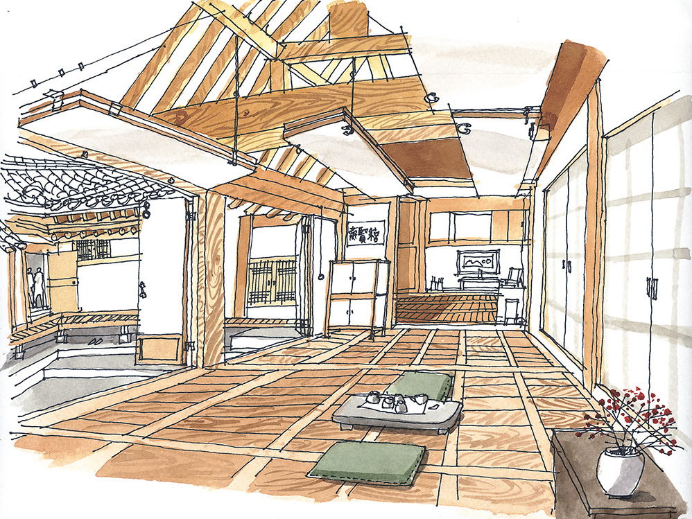 한옥의 내부공간 이렇듯 사시사철, 한옥의 아름다움은 외관뿐만 아니라 실내공간도 단아함으로 나타난다. 시각적 디자인도 우수하지만 창호지로 바른 미서기문과 대청마루가 제공하는 열림과 닫힘의 융통성, 그리고 소통의 공간개념은 다목적의 장소로 활용하기에 손색이 없다.
