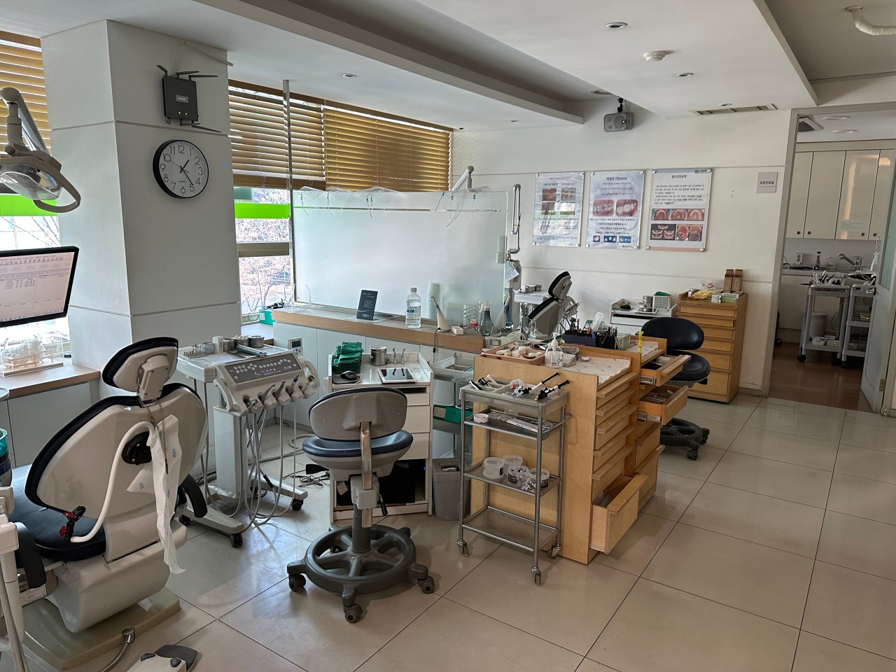 지금의 병원은 2010년도에 운영하기 시작했습니다. 당시 후배가 하고 있었던 병원을 제가 인수하게 된 것입니다. 인수하면서 인테리어를 다시 했습니다. 하지만 구조상 많은 변화를 주기 어려웠습니다. 지금의 원장실은 당시 기공소였습니다. 이곳을 어떻게 부실수가 없었습니다. 병원 안쪽에 기본 토대를 두고 인테리어를 다시 하려던 중, 2017년도에 이 기공소가 나가면서 빈공간이 되었습니다. 그러면서 이곳을 원장실로 만들고 저쪽에 있던 원장실에 체어를 하나 더 놓고 운영하게 된 것이죠. 현재 체어는 5대로 운영 중입니다.