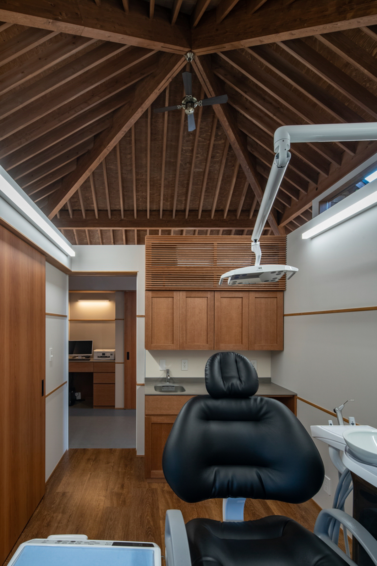 결과적으로 이 건축 디자인은 사람들이 원하는 치과 클리닉을 실현하는데 기여했다. 또한, 바닥 높이를 대지의 고도 차 중심에 두었다. 사람들은 대기실에서는 마치 떠있는 듯한 느낌을 받고, 검진실과 직원 구역으로 가면서 지면으로 침식하는 느낌을 받게 된다. 공간은 나무 구조를 드러내도록 설계된 지붕으로 연결된다. 나무 재료를 많이 사용할수록 환자의 긴장도는 감소하게 된다. 이러한 몇 가지 디자인 기법을 통해, 건축가는 건물에 회상적이면서도 새로운 느낌을 주었다.