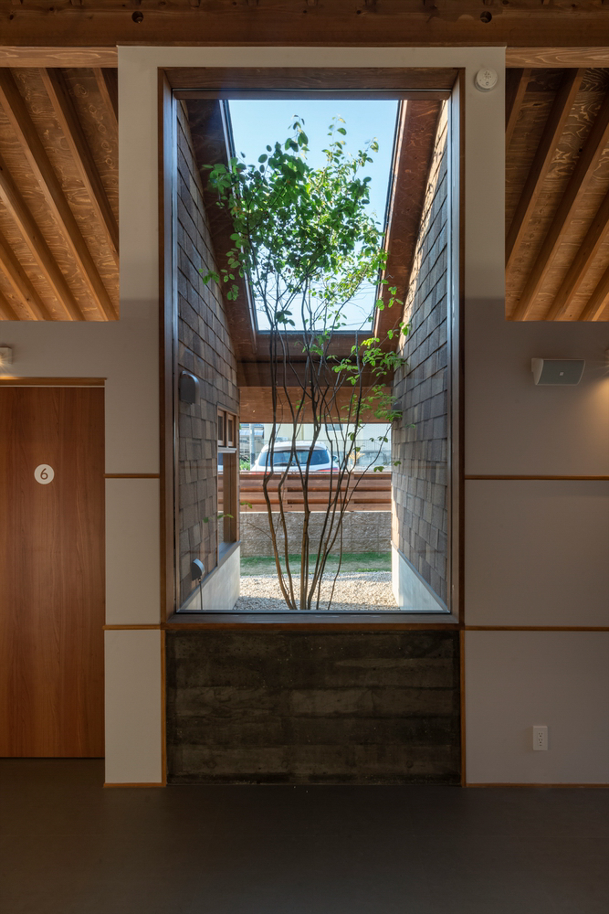 이 건물은 산과 주거 지역을 연결하는 치과 클리닉이다. 대지는 길고 좁으며 3m의 고도 차가 있는데, 이전에는 식물이 무성한 곳이었다. 이 광경을 본 건축가는 자연의 생명력을 느꼈고, 그것을 디자인에 활용하기로 했다. 클라이언트 역시 대지에 있는 대나무 숲과 비파나무를 좋아했다. 환자들이 편안히 머무를 수 있는 공간, 다음 방문을 기대하게 만드는 치과를 원했다. 대지의 기존 특성을 활용하는 디자인 접근법을 통해 사람들이 다양한 경험을 할 수 있도록 했다.