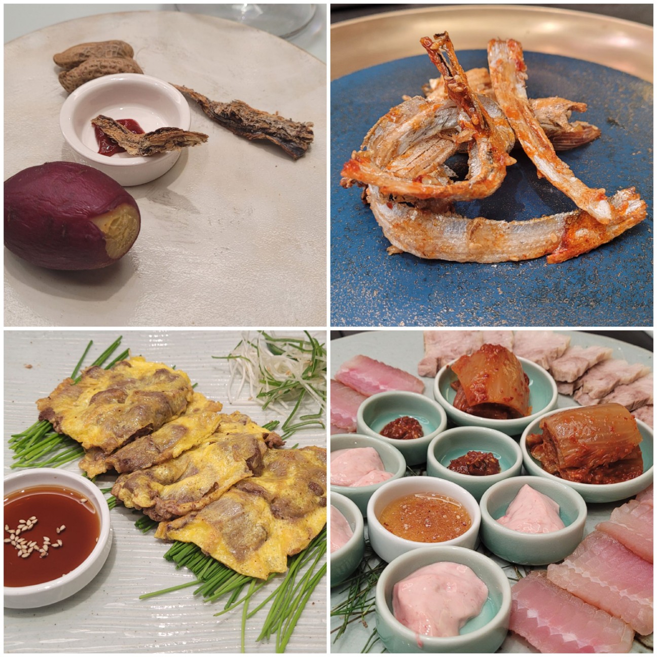 식전 먹거리로 낙화생, 고구마와 함께 나온 순천만 대갱이는 비린내가 없고 고소하다. 짱뚱어와 함께 청정 순천만 뻘 속을 휘젓고 다녀서 인지 기름기가 적고 담백하다. 남해 갈치 실치 무침은 갈치 새끼를 3일 동안 구웠다 말렸다 반복 후 무쳤다고 하는데, 적당한 양념에 씹는 맛이 있어서 함께 나온 해남 막걸리 안주로 딱이다.