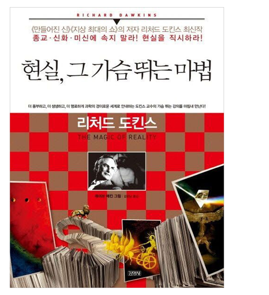 도킨스는 종교, 신화, 미신에 속지 말고, 현실이 가장 가슴을 뛰게 하는 마법이라고 적어 놨다. 책에는 열두 가지 질문을 하고, 그 질문에 대한 답으로 종교적이거나 신화적인 대답을 적어 놓고, 이런 신화의 허구성과 과학적인 합리성의 대조해서 비교해 놓았다.