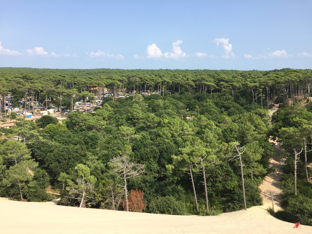 동서로 폭이 600m나 되기 때문에 대서양 방향을 바라보면 그냥 부드러운 모래로 뒤덮인 드넓은 백사장이다. 방금 그렇게 힘들게 올라온 게 맞나 싶을 정도다. 이 모래 언덕은 대서양에서 불어오는 칼바람으로부터 보르도 지역을 보호해 주는 역할을 한다. 덕분에 보르도 지역에서 훌륭한 와인이 생산될 수 있다고 한다.