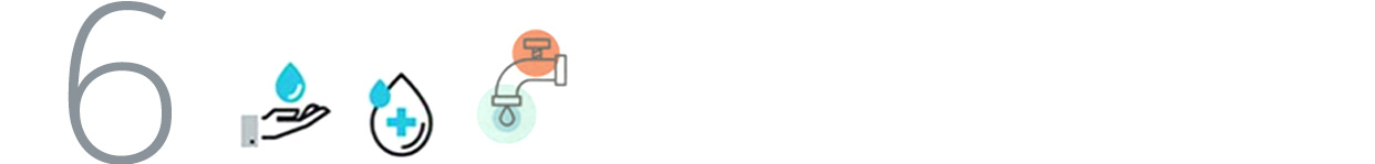 싱크대를 작업대의 일부로 통합하여 오염 가능성을 낮춘다. 수도꼭지는 중심에서 벗어나 하수구와 마주 보지 않아야 물이 튀지 않으며 깊은 작업용 싱크대에서 오수가 다른 곳으로 튀는 것을 방지할 수 있다. 싱크대는 방에 들어오자마자 눈에 띄는 곳에 배치해 직원들이 손을 자주 씻을 수 있도록 유도한다. 싱크대나 손 소독용 젤이 눈에 잘 띌 수 있도록 시각적인 신호를 배치한다. 수도꼭지, 핸드 타월 통, 손 소독제 용기, 비누 용기 등에 센서 기술을 활용한다.
