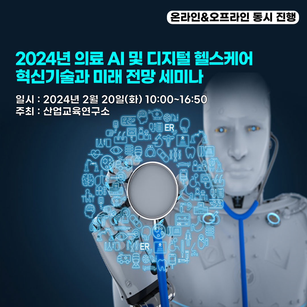 현재 의료 AI 및 디지털 헬스케어 산업은 질병의 진단과 치료뿐만 아니라 예측을 통한 질병 예방, 환자 개개인의 특성에 적합한 맞춤 의학 등 의료 서비스 전 분야로 확대되고 있다. 특히 인간의 생명과 직결되므로 신기술을 도입할 때 해당 기술에 대해 엄격한 검증 과정과 보수적인 평가 체계를 적용하여 시간과 비용이 비교적 많이 소요됨에도 불구하고 급속도로 성장하고 있다. 이러한 시기에 산업교육연구소는 2024년 의료 AI 및 디지털 헬스케어 혁신기술 개발 현황과 실제 사례, 미래 전망을 시작으로 의료분야에서의 디지털 트윈 혁신기술 개발 현황, 의료 AI 기반 의료기기 성능평가 표준기술 및 디지털 헬스케어 규제와 인허가 동향 등 여러 제반 정보를 공유하는 ‘2024년 의료 AI 및 디지털 헬스케어 혁신기술과 미래 전망 세미나’를 개최했다. 이에 본 기사에서는 가톨릭대학교 의과대학 고태훈 교수가 발표한 ‘의료 AI 및 디지털 헬스의 현재와 미래’, 한국화학융합시험연구원 의료전기센터 정경호 센터장의 ‘의료 AI 및 디지털 헬스케어 규제와 최신 인·허가 동향’, 강건욱 서울대학교병원(서울대학교 의과대학 내과 및 핵의학전문의)교수이자 서울대학교 생명공학공동연구원 원장의 ‘소비자 중심 의료 정보, 디지털 헬스케어 혁신기술 개발 현황과 미래 전망 및 적용 사례’를 소개하고자 한다.