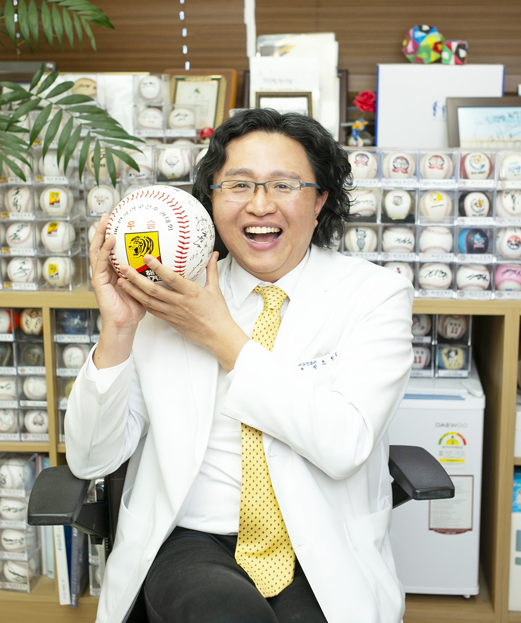 “혼자 있는 시간이 많아지면 가끔씩 우울할 때가 있는데, 제가 좋아하는 야구공을 보고 있으면 저절로 행복해집니다. 여기 야구공들은 모두 다 사인이 된 볼들이에요. 일부는 제가 직접 사인을 받기도 했습니다. 환자들 역시 진료실에 들어오시면, 야구 사인볼을 구경하느라 잠시나마 아픔을 잊곤 하십니다. 그만큼 저에게도, 환자에게도 야구 사인볼이 주는 의미는 굉장히 크죠(웃음).”