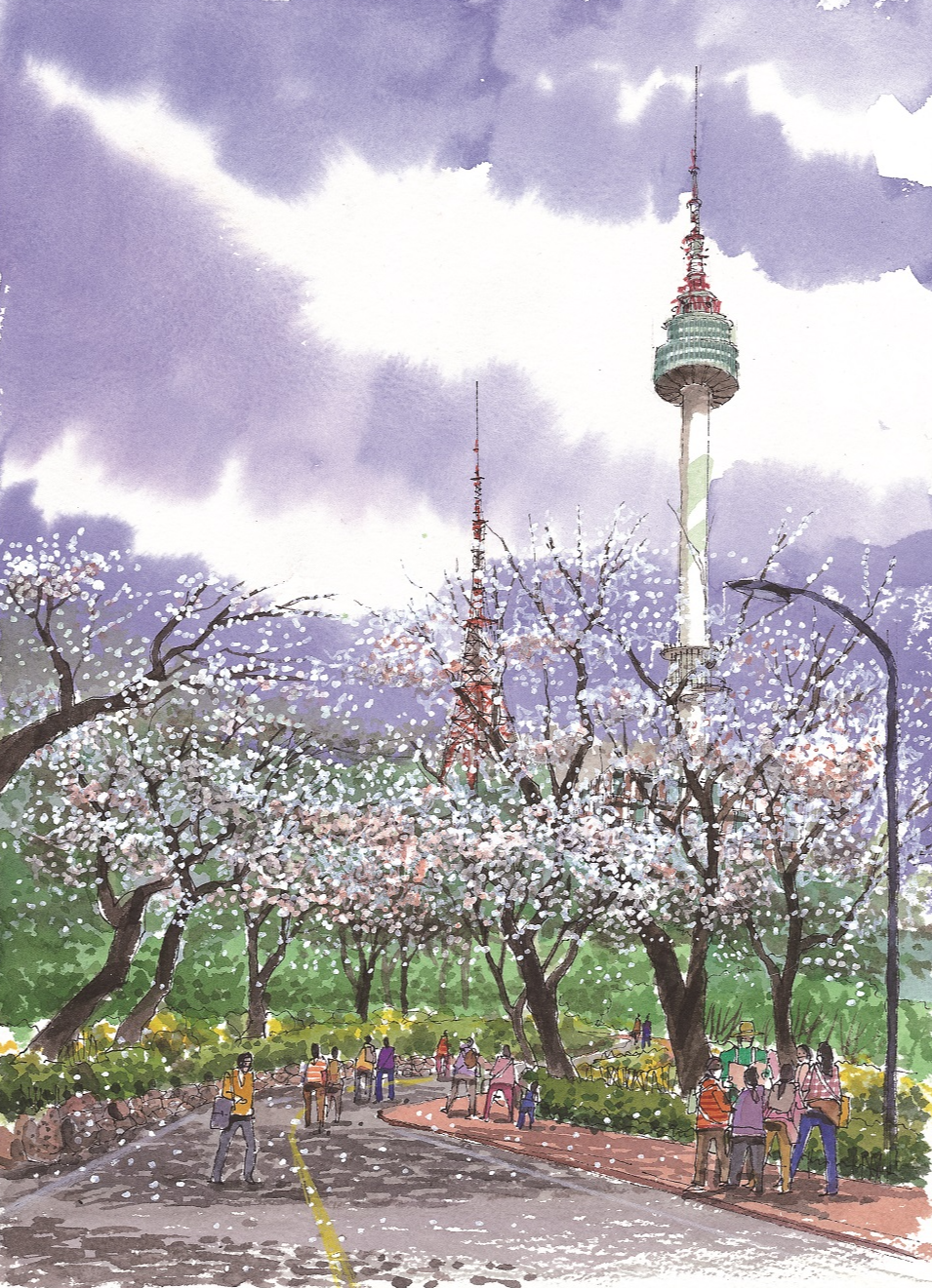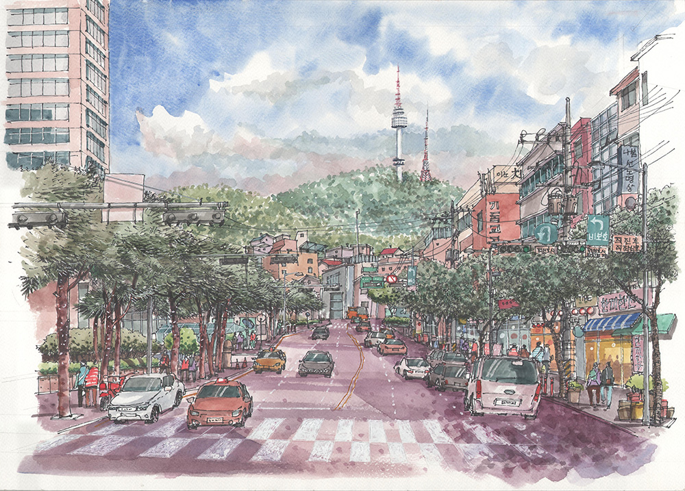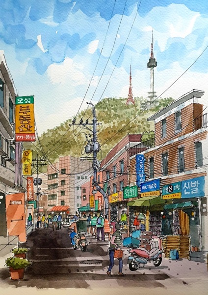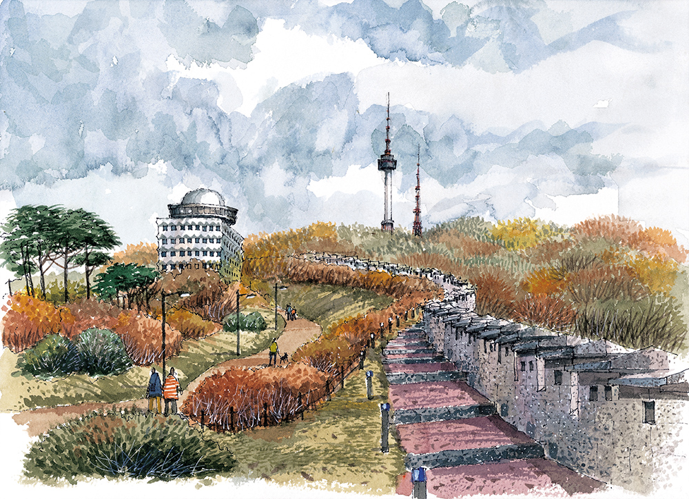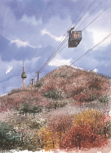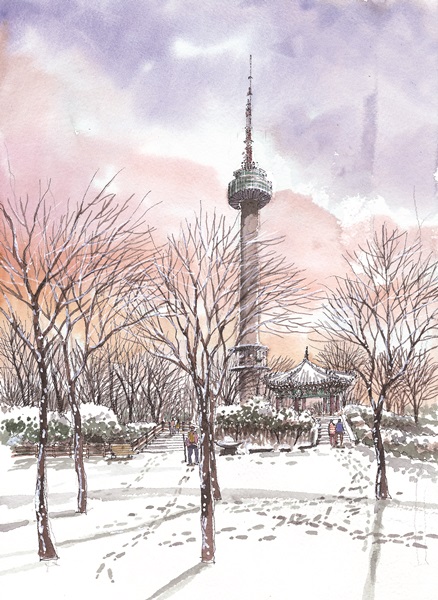 남산서울타워와 관련된 여러 풍경들에 대해 스케치와 계절감을 함께 곁들여 보았다. 그림들을 완성하고 나니 일 년 사시사철, 우리 곁에는 남산이 항상 가까이 있었구나 하는 생각이 든다.