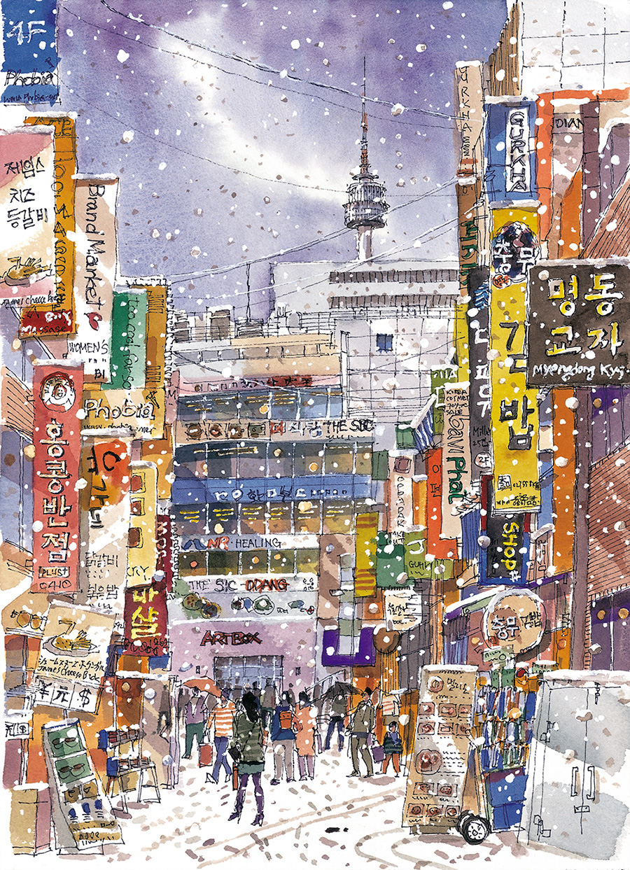 후암로 언덕길에는 서울역 인근이라 고층빌딩도 많지만 경사에 따라 작은 집들이 포개져있다. 하루 종일 교통은 복잡한 동네지만 오래된 상가들은 더욱 친근하고 정겹다. 명동 골목도 맛집들의 간판들이 얼굴을 내밀며 서로 자기 자랑을 하느라 분주하다. 눈이 내리거나 찬바람이 옷깃을 파고드는 계절이 오면 퇴근길에 동료들과 단골 맛집에 들러 뜨끈한 국물과 소주 한 잔으로 하루를 마무리해도 좋겠다.