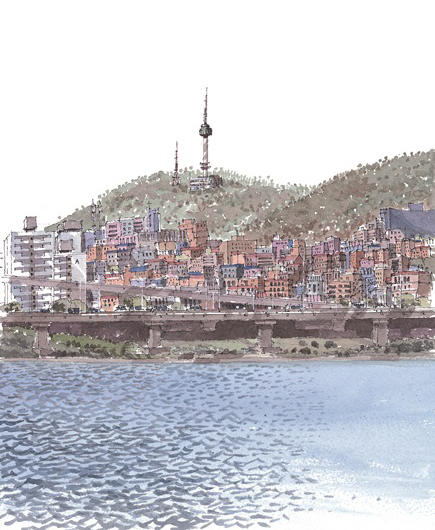건축가인 내게 서울의 랜드마크를 묻는다면 주저 없이 남산과 한강을 꼽는다. 능선을 따라 올망졸망 구성된 보광동과 이태원동의 주거지가 남산과 더불어 인상적인 풍경을 만들어 낸다. 강변북로 위에 차량들은 어디론가 분주하게 움직이고 있다. 아직은 강물 위로 찬바람이 불고 있지만 봄은 멀지 않은지 훈훈하다. 강 너머 하얏트 호텔과 이태원동이 보인다.
