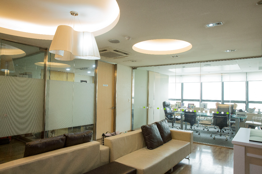“보는 순간 공간이 무척 마음에 들었습니다. 그래서 인테리어 디자이너에게 일단 창을 막지 말자고 말했습니다. 밖이 시원하게 보이는 그대로 두자고 한 것이죠. 또 병원에 출근하면서 내 눈이 좀 시원하고 내 마음이 좀 편해지는 그런 공간이 되었으면 한다고 말했습니다. 특히 정면으로 보이는 탁 트인 공간은 벽을 세워 가리지 말고 그대로 보이길 원했습니다. 그래서 전체 노출이 가능한 유리문으로 오픈하게 한 것이죠.”