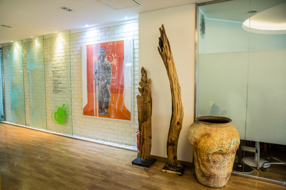 사실 제가 사는 곳이 여기였고, 또 제가 보는 환자들도 이곳에 있으니 자연스럽게 한남동으로 알아보게 됐습니다. 그렇게 알아보다가 이 공간을 발견하게 된 것입니다. 그런데 혼자 개원하는 병원 치고는 너무나 큰 평수였습니다. 임대 평수가 95평이니까요. 이렇게까지 넓을 이유가 없지만, 보는 순간 큰 창문 너머로 밖이 보이고 굉장히 쾌적하면서 개방감이 좋아서 마음에 들었습니다. 그래서 무리를 해서라도 오게 되었습니다. 그리고 인테리어디 자이너에게 일단 창을 막지 말자고 말했습니다. 밖이 시원하게 보이는 그대로 두자고 한 것이죠. 또 병원에 출근하면서 내 눈이 좀 시원하고 내 마음이 좀 편해지는 그런 공간으로 디자인했으면 한다고 말했습니다. 그래서 대기실도 굉장히 넓고 쾌적하게 진행했습니다. 특히 정면으로 보이는 탁트인 공간은 어떻게 활용할지 고민했는데 개인적으로 회의를 많이 하니까 벽을 세워 가리지 말고 그대로 보이게 하자고 말했습니다. 더군다나 회의는 낮에 하지 않고 진료 후 아무도 없을 때 하면 되기에 전체 노출이 가능한 유리문으로 오픈하게 한 것이죠. 이 회의실 공간이 포인트라고 할 수 있습니다.