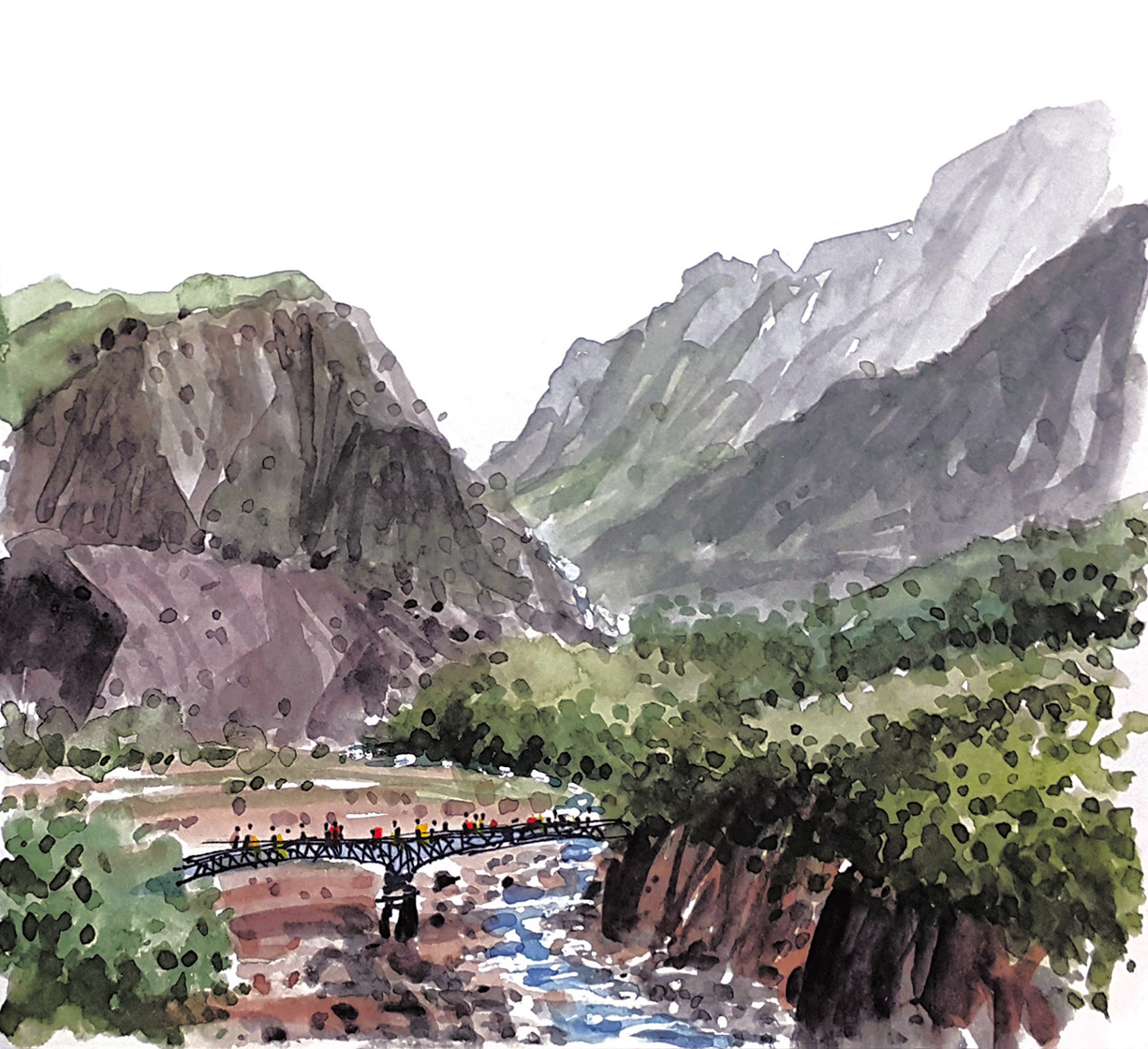 백두산 이도백하에 도착한 다음날 이른 아침부터 서둘러 백두산을 향한다. 우리 일행은 북파 코스를 선택했고 차를 몇 번 갈아타야 천문봉 정상에 오를 수 있다. 하지만 오호 통재라, 오늘따라 하필 날씨가 따라주지 않아 정상에 오를수록 짙은 안개도 모자라 비까지 내린다. 백 번 와야 두 번 정도 잘 볼 수 있다고 해서 이름이 백두산이라는 농담으로 안내자는 허탈해진 우리 일행을 위로한다. 천지연의 모습은 안개 속 신비에 쌓여있고 초행객들에게 명산은 자신의 자태를 보여주는 것에 인색한지, 허락하지 않는다. 우비를 입었지만 옷은 비에 젖고 바람도 불어 체감온도는 뚝 떨어진다. 관광객들로 붐비는 휴게실에는 다행히 한국산 컵라면이 있어 따뜻한 국물로 추위를 녹이고 허기와 아쉬움을 달래본다. 역시 해외에서 컵라면의 효용은 위대하다.