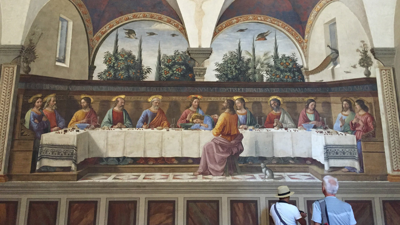 메디치가에서 주관한 피렌체의 인문학 아카데미에 참여하는 지식인들이 자주 모였던 아래층 수도사들의 식당에는 미켈란젤로의 스승으로 유명한 도메니코 기를란다요의 ‘최후의 만찬’이 있다. 미술사가들이 레오나르도 다빈치의 ‘최후의 만찬’과 다른 구성을 비교해 보일 때 많이 등장하는 유명한 작품이다.