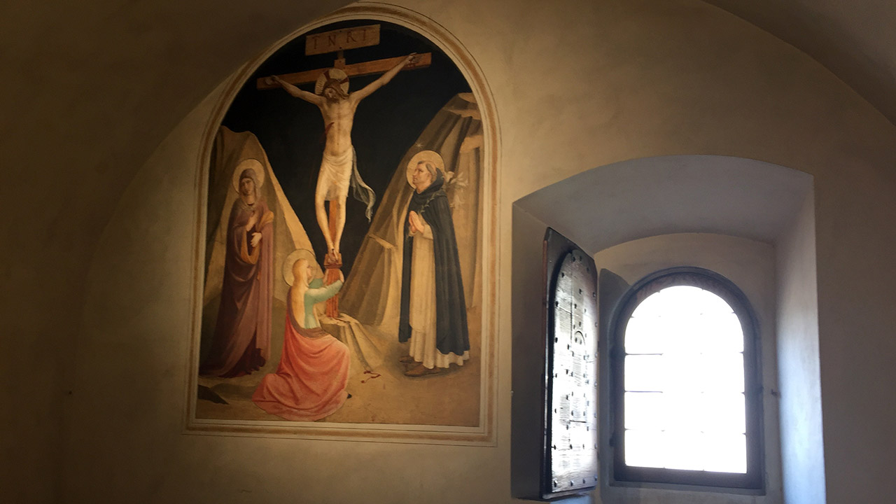 수도사들의 방은 소박하다. 문을 닫고 들어가면 세상과 통하는 창구는 작은 창문 하나뿐이다. 프라 안젤리코가 정성스럽게 그림을 그리는 장면, 그리고 그 방에서 프레스코화를 보며 긴 시간 동안 기도하고 묵상하던 수도사들의 모습을 상상하면서 작품을 감상하다 보면 타임머신을 타고 과거로 훌쩍 떠나 있는 것 같다.