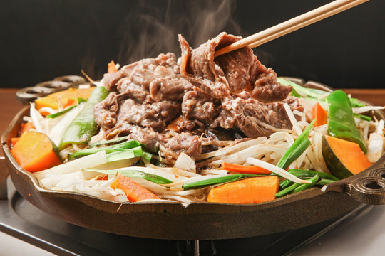 일본 홋카이도 삿뽀로에는 재미있는 고기 구이가 있다. 아주 뜨겁게 달궈진 두꺼운 투구모양의철판 위에 파와 양파 그리고 양고기를 구워 먹는 징기스칸이 바로 그것이다. 침략전쟁 당시 방한모자의 생산을 위해 양이 대량으로 유입 되었고 그 양을 처리하기 위해 고안된 요리이다. 이 때 당시의 양은 늙은 머튼(Mutton)으로 냄새 때문에 먹기가 아주 고약해서 80년대까지는 어쩔 수 없이 먹는 그런 요리였지만 이 어른 양 머튼(Mutton)이 어린 양 램(Lamb)으로 대체 되면서 뛰어난 맛으로 일본 전역을 강타 하였고 현재 홋카이도의 명물로 자리 잡게 되었다. 징기스칸이라는 음식 이름은 양고기를 대표하는 나라가 몽골이라 몽골의 대표적인 인물 징기스칸의 이름을 따왔다는 설이 유력하나 이름의 정확한 유래는 아무도 모르는 것이 정설이다.
