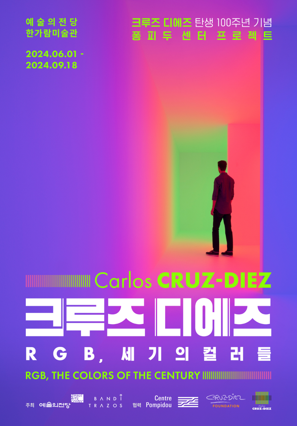 Cruz-Diez - RGB, The Colors Of The Century예술의전당(사장 장형준)과 반디트라소 라틴커뮤니케이션(대표 안진옥)은 《크루즈 디에즈 - RGB, 세기의 컬러들(Cruz-Diez - RGB, The Colors of the Century)》를 6월 1일부터 9월 18일까지 한가람미술관에서 개최한다. 이번 전시는 빛과 색채의 거장, 카를로스 크루즈 디에즈(Carlos Cruz-Diez, 1923-2019)의 탄생 100주년을 기념하여 크루즈 디에즈 재단이 작가의 고향인 베네수엘라 카라카스를 시작으로 프랑스 파리, 미국 뉴욕, 휴스턴, 플로리다, 스페인 말라가 등 세계 각 도시에서 전시회를 이어가고 있다. 퐁피두 센터(Centre Pompidou)와의 협력 프로젝트로 소개되는 《크루즈 디에즈 - RGB, 세기의 컬러들》은 베네수엘라 카라카스(2023-24), 중국 상하이(2023-24), 프랑스 엑상프로방스(2023) 등 세계를 순회하는 시리즈 전시 중 하나로, 한국에서는 처음 서울에서 개최한다.