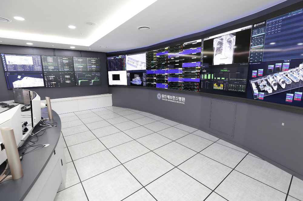 특히 IRS(통합반응상황실, Integration Response Space)는 용인세브란스병원이 내세운 대표적인 중앙 모니터링 시스템이다. 여기에 모든 데이터가 모이는 곳으로, 환자나 의료진의 데이터, 출입현황, 주차현황, 응급실 현황 등 모든 데이터들이 분석되고, 적절하게 반응하는 공간이다. 또한 환자의 생체신호들이 모여 EMR에서의 유의한 정보와 통합해 환자의 위험도가 자동으로 계산된다. 고위험 환자들의 상황에 대해서는 의료진에게 자동으로 전달이 되도록 구성되어 있다. 여기서 가장 중요한 것은 여기에 모이는 데이터들은 별도의 연구용 서버에 저장이 되어 R&D의 귀한 리소스로 활용된다는 것이다.