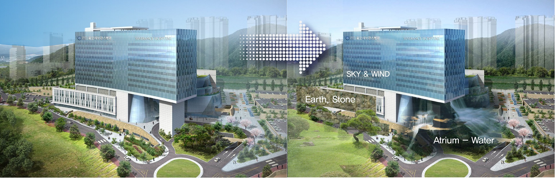 Healing wave 콘셉트 이미지 10. 특히 스마트병원(디지털 헬스케어)을 내세우며 병원 디자인에 있어 참고하거나 염두에 둔 병원 및 공간이 있다면 어디였는지, 혹은 세계적으로 어느 병원을 표방하고 있는지도 궁금합니다.