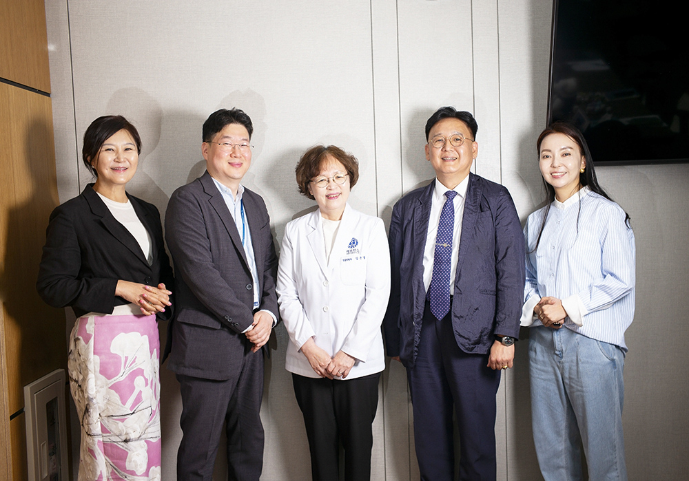 왼쪽부터 노태린 발행인, 용인세브란스병원 권지원 홍보팀장, 김은경 병원장, 이정헌 의료정보팀장, 박하나 편집장 인터뷰이. 용인세브란스병원 김은경 병원장