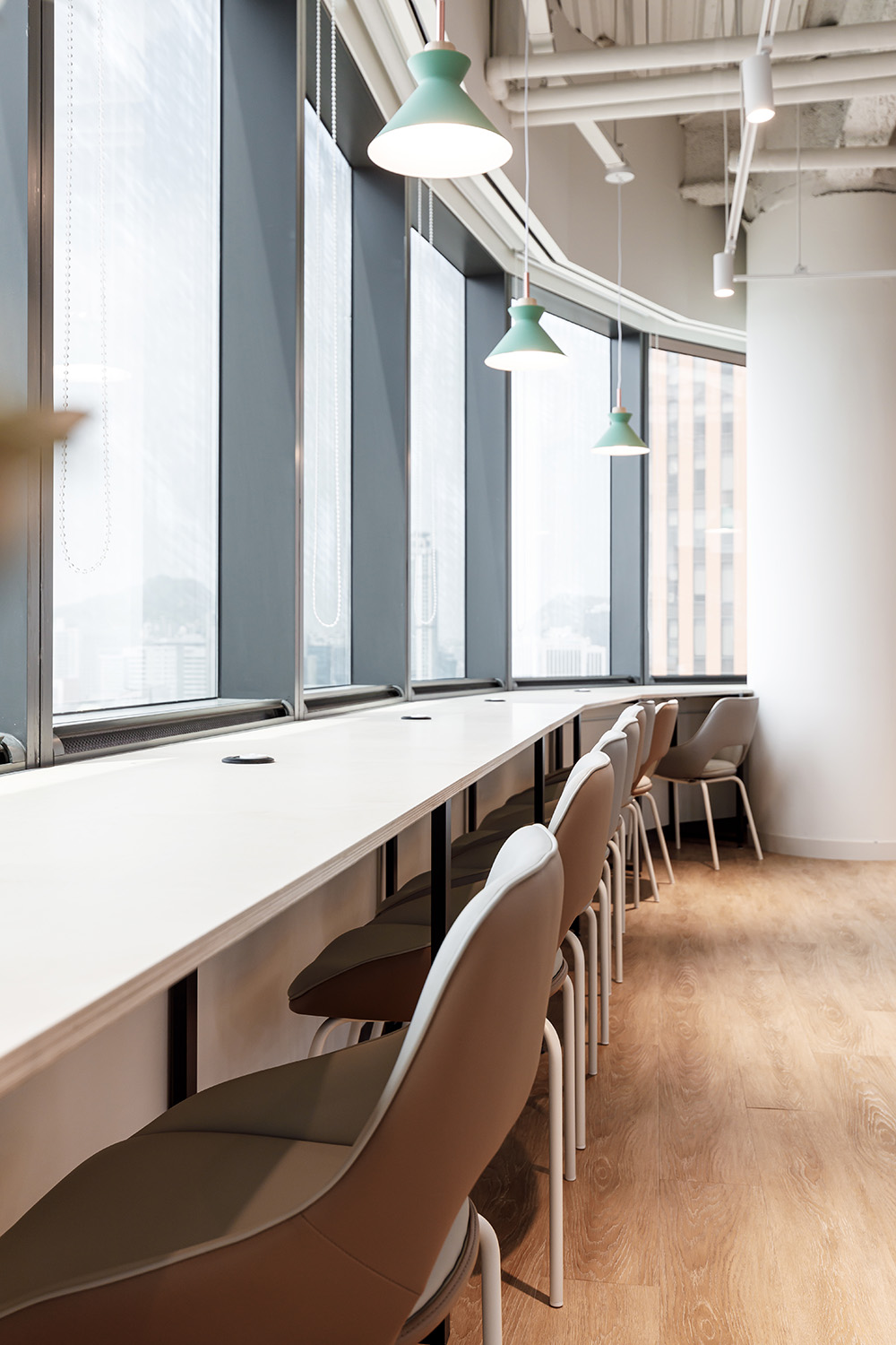 앞서 언급했듯, 이 공간은 건물 자체가 통창으로 이루어져 높은 채광과 일조량을 자랑한다. 디자이너는 이러한 공간의 장점이 더욱 부각되도록 창가 앞에 테이블과 소파를 두어 휴식과 일을 병행할 수 있도록 디자인했다. 사무공간과 휴게공간에는 앞서 언급한 소파나 테이블을 창가 앞에 설치해 일하면서 틈틈이 휴식을 취하게 한 점이 돋보인다. 또한 PM공간 역시 창가 앞에 1인용 높은 등받이 체어를 두어 개인의 프라이버시 및 창의적인 아이디어를 발산하는 공간으로 활용되게 했다.