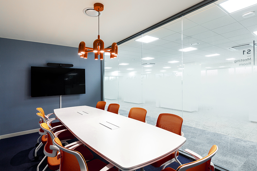 사무공간에 마련된 의자와 긴 테이브
