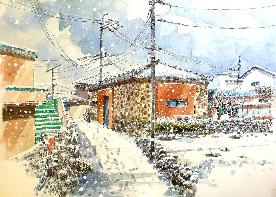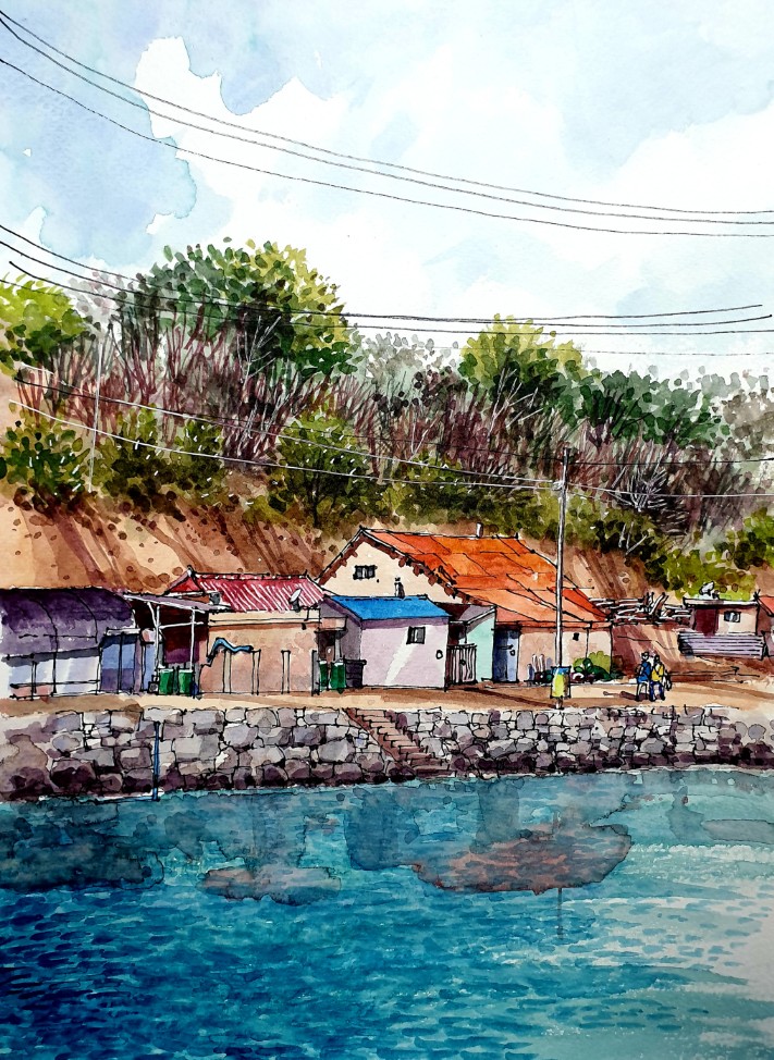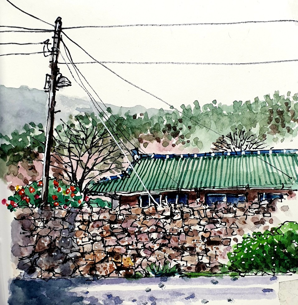 고흥 고흥은 서울에서 제법 먼 거리에 위치한다. 순천까지 고속열차로 이동 후 랜트카로 일행들과 고흥을 돌아본 적이 있다. 나로 우주센터, 과학관, 발사전망대와 같은 미래 첨단시설과 소록도와 같은 과거 암흑기의 수용시설이 공존하는 도시다. 고흥군의 지역을 둘러보며 시가지보다는 읍이나 면 소재지의 옛집이나 동산을 배경으로 자연석을 담장으로 쌓아 올린 소박한 전원의 집들이 보기에 좋아 그림에 담았다. 점점 지방 도시의 인구가 소멸하고 있음을 증명하듯 길에서 만나거나 보이는 지역주민들은 거의 없을 정도다. 지방인구 소멸에 대한 대안은 무엇일까?
