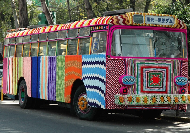 왼쪽부터 뜨개로 싼 폐차, 호박모양의 슬로우쿠커 ⓒ폴라리스어드바이저 진정성의 예를 살펴보자면, 널려있는 폐차를 뜨개질로 감싸버린 경우도 있다. 또 코로나 때는 상하이에 있는 어떤 정자를 뜨개질로 감싸버렸다. 만약 내가 뜨개질을 내 집에서 목도리를 만드는 차원에서 멈췄다면, 그 가치는 아무것도 아닌 게 되어 버렸을 것이다.