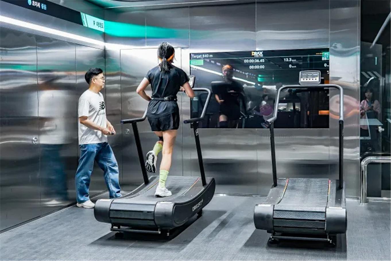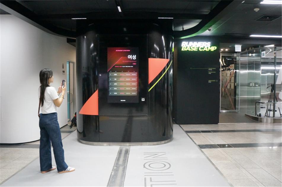 (‘러너스테이션’의 무동력 트레드밀 체험 프로그램=서울시) 지상 1층(M1)에서는 여의나루역 2번 출구로 나가면 여의도 한강공원으로 이어지며, 이 출구는 러너들을 위한 포토존으로 꾸며졌습니다. 계단은 러닝 트랙 모양으로 디자인되었고, 조형물과 조명이 설치되어 러닝의 시작과 끝을 기념하는 특별한 사진 촬영이 가능합니다. 또한, 러너스테이션에서는 다양한 러닝 체험도 즐길 수 있습니다. 베이스캠프 입구에는 신발 소독·살균기가 설치되어 있어 러닝 전에 운동화를 쾌적한 상태로 만들어 줍니다. 전시된 러닝화를 신어볼 기회도 제공되며, 체험을 통해 개인별로 최적의 러닝화를 추천받을 수 있습니다.