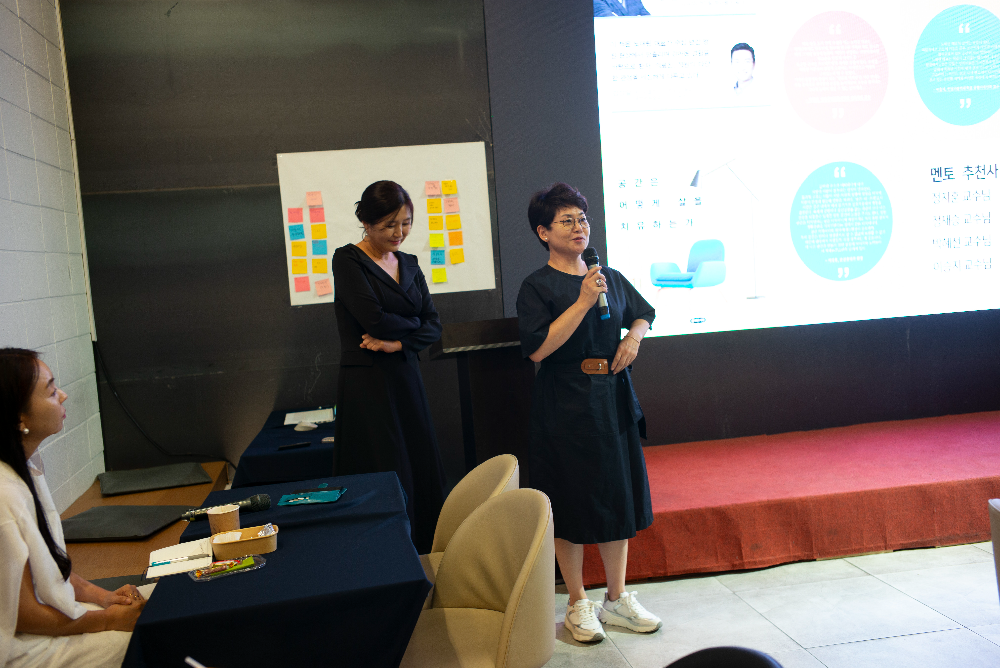 노 대표는 발표한 참석자들에게 소정의 선물을 전하며, 마지막으로 자신의 스승이자 존경하는 서수경 숙명여자대학교 환경디자인과 교수에게 마이크를 건넸다.